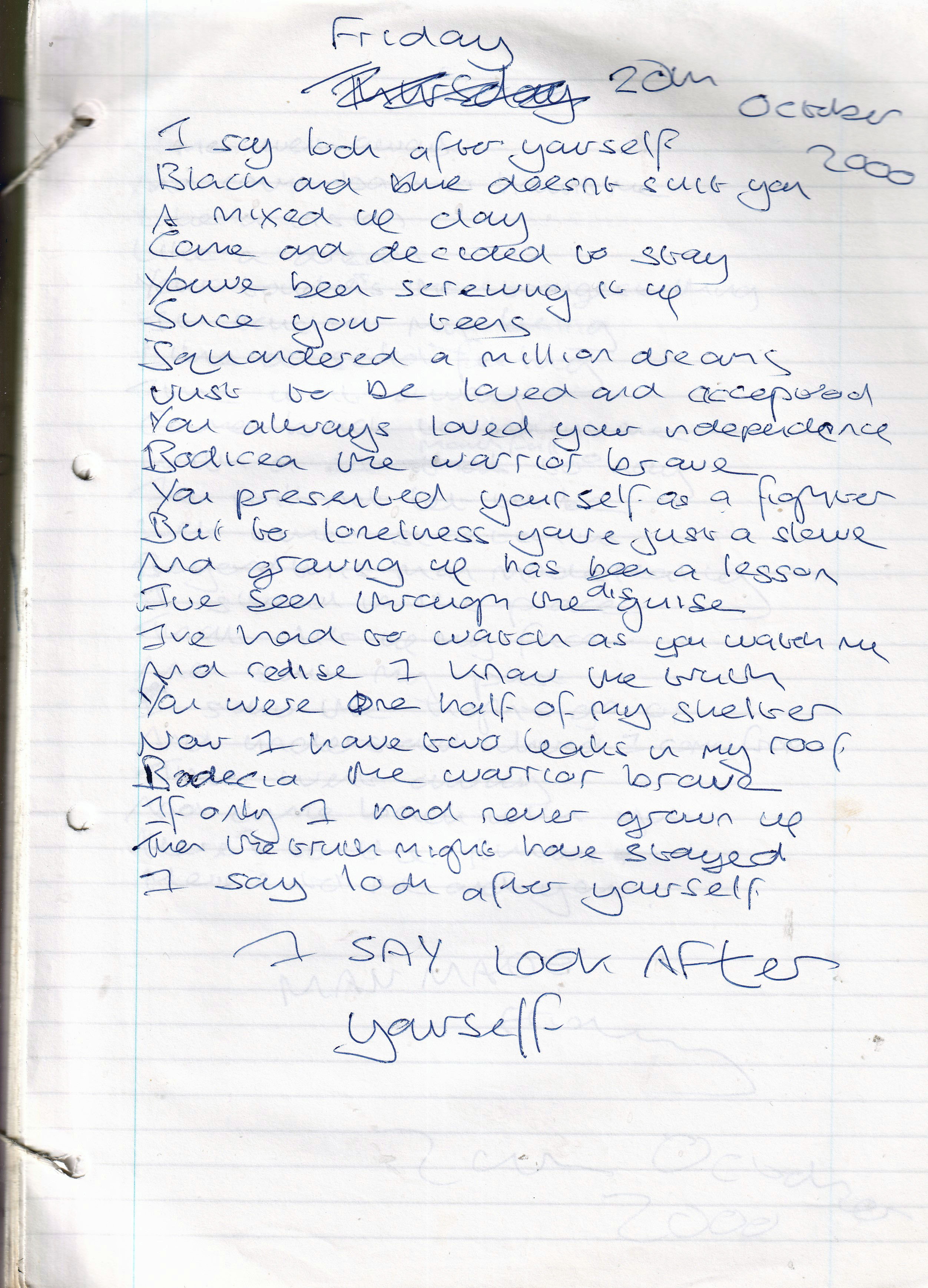 I Say, Look After Yourself – Written Friday 20th October 2000 (Aged 25)