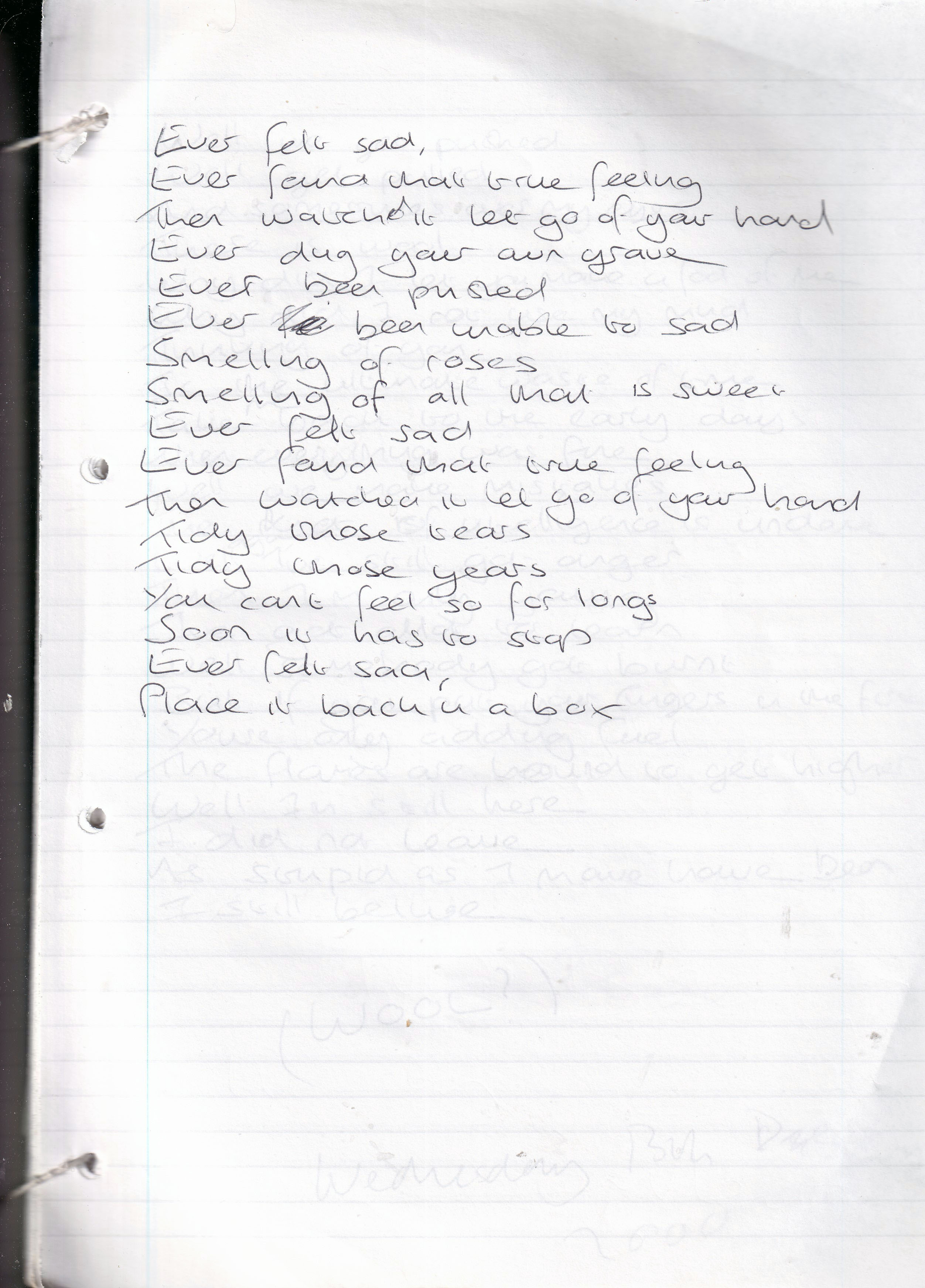 Tidy Those Tears (Originally Untitled) – Written December 2000 (Aged 25)