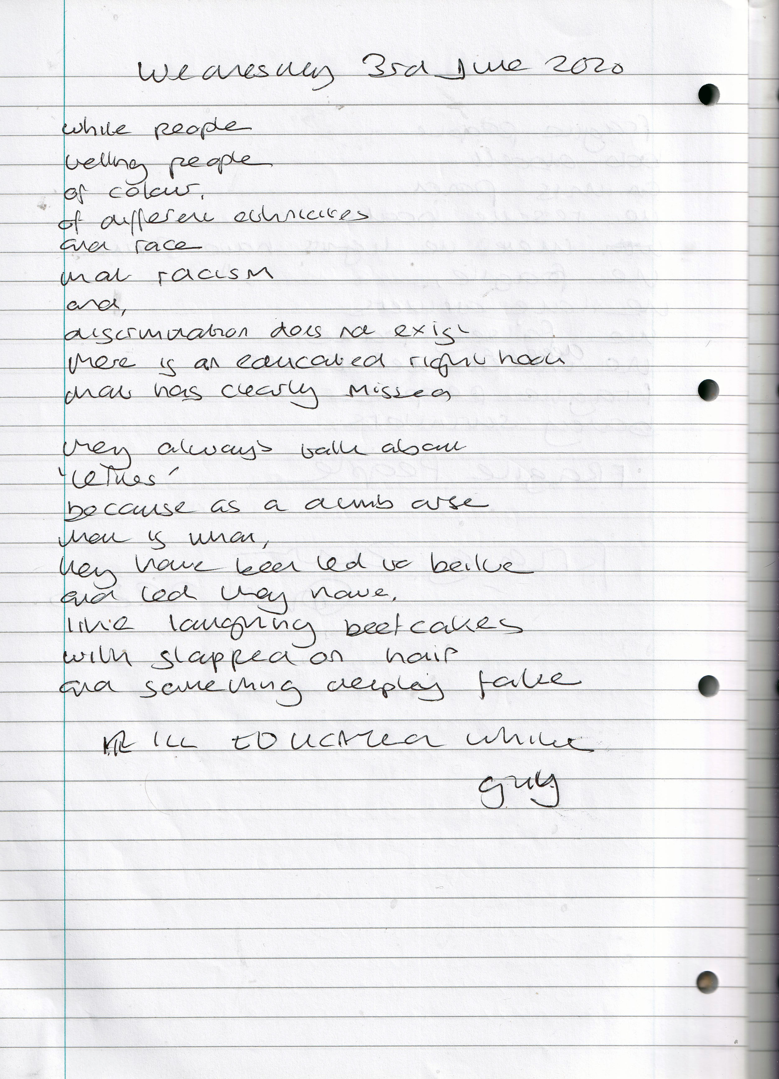 Ill-Educated White Guy – Written Wednesday 3rd June 2020 (Aged 45)