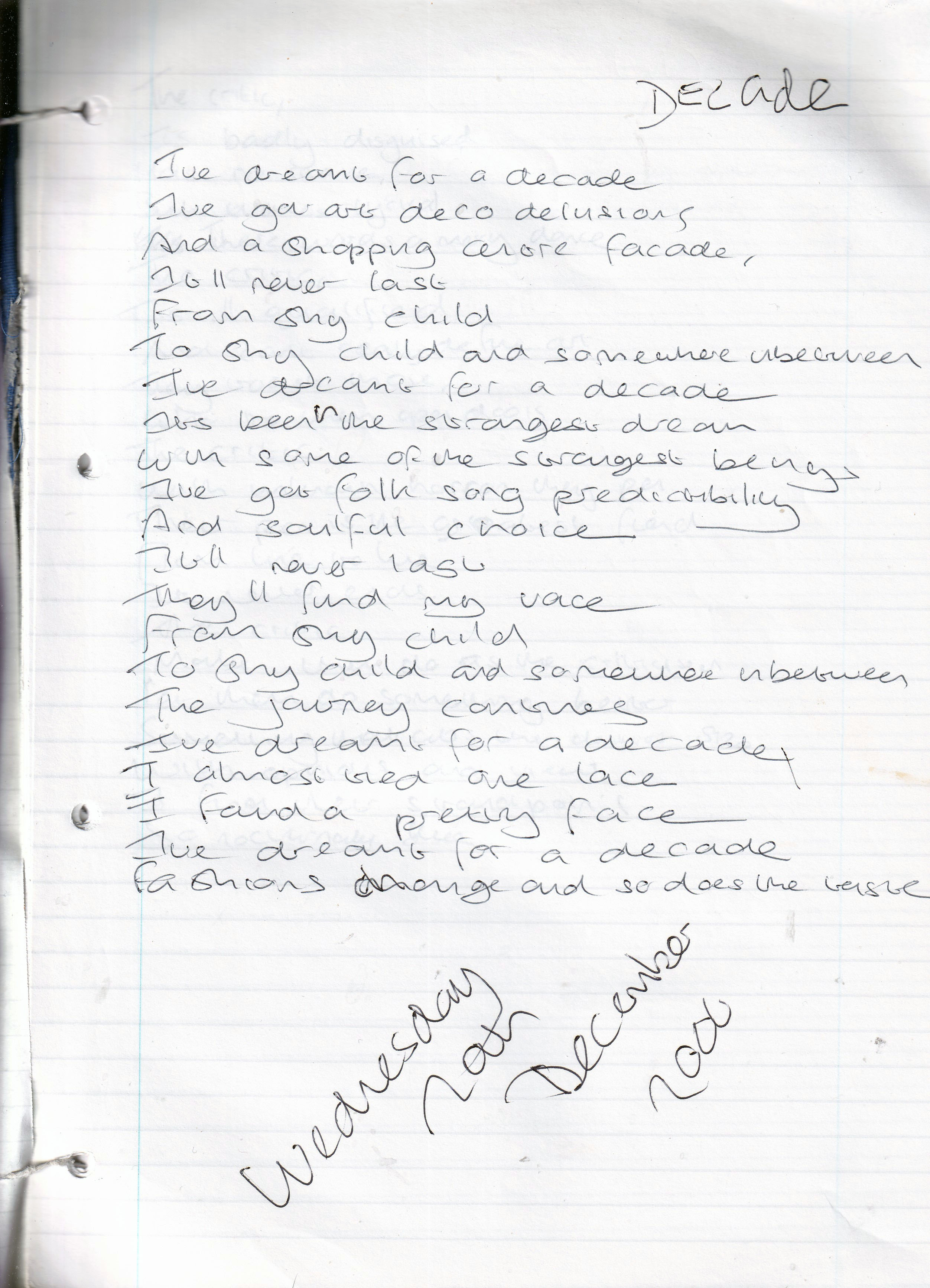 Decade – Written Wednesday 20th December 2000 (Aged 25)
