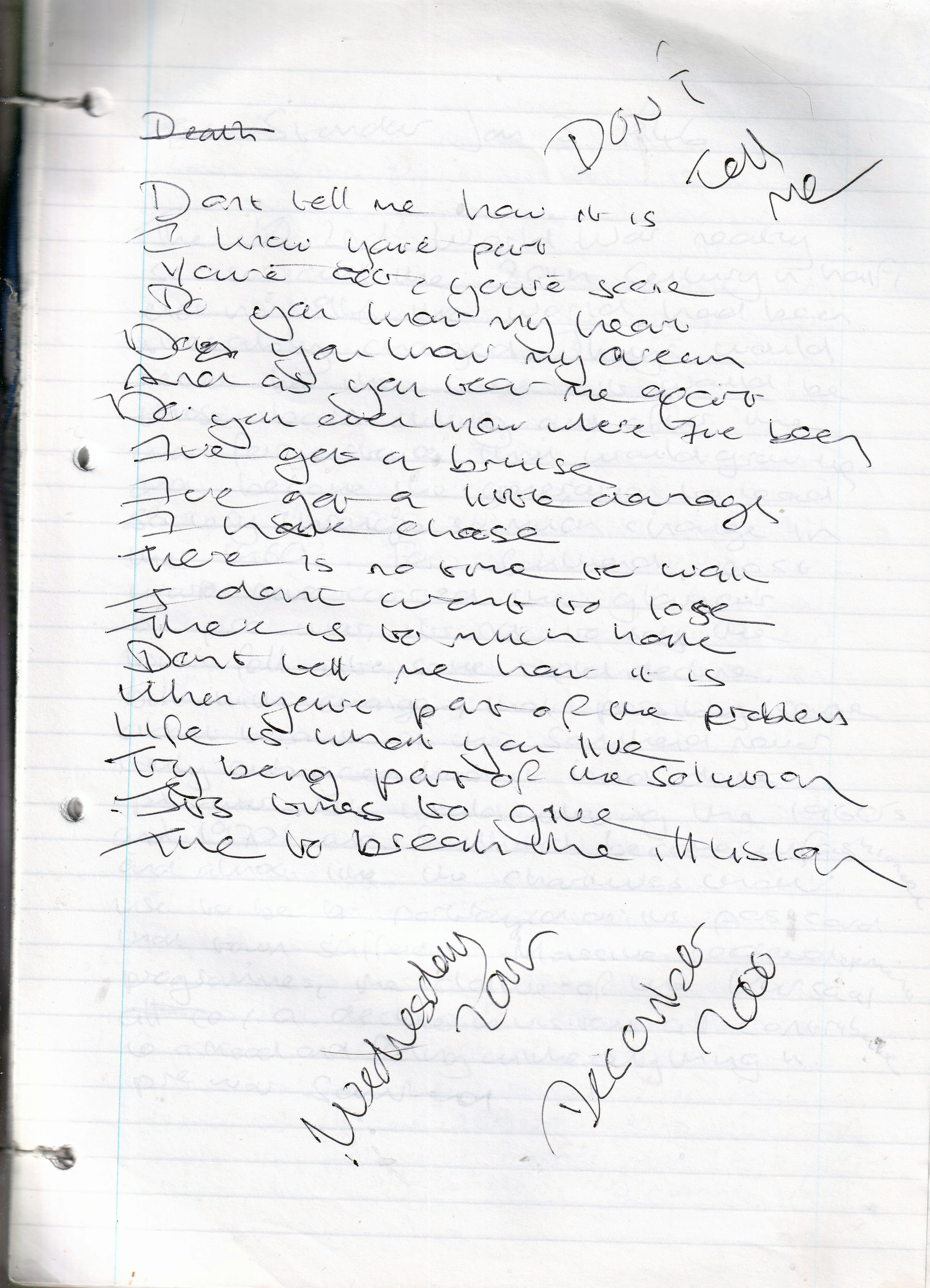 Do Not Tell Me – Written Wednesday 20th December 2000 (Aged 25)