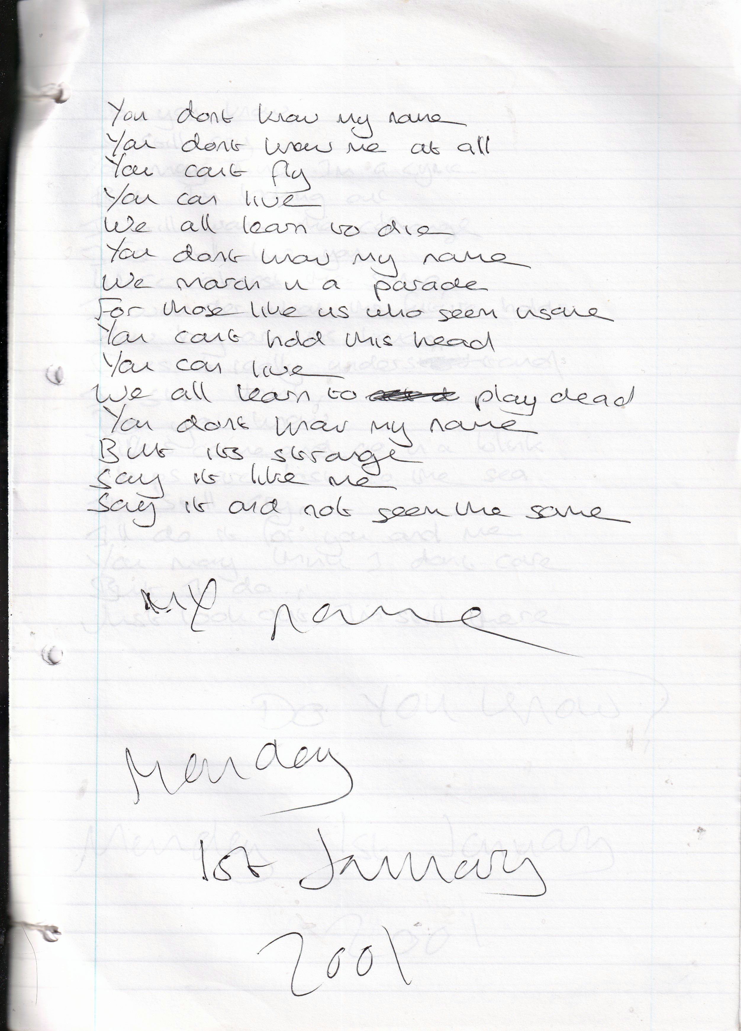 My Name – Written Monday 1st January 2001 (Aged 25)