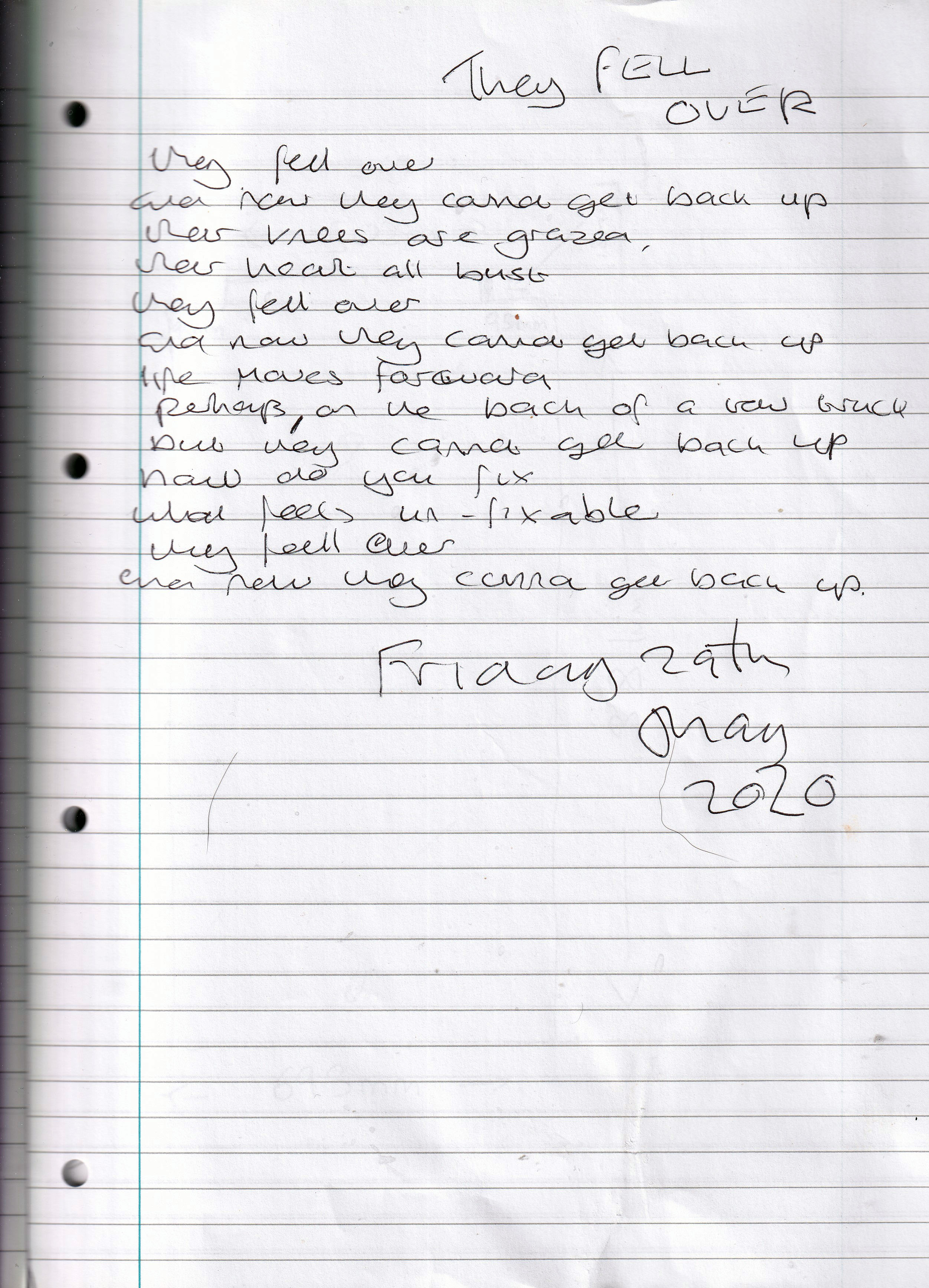 They Fell Over – Written Friday 29th May 2020 (Aged 45)