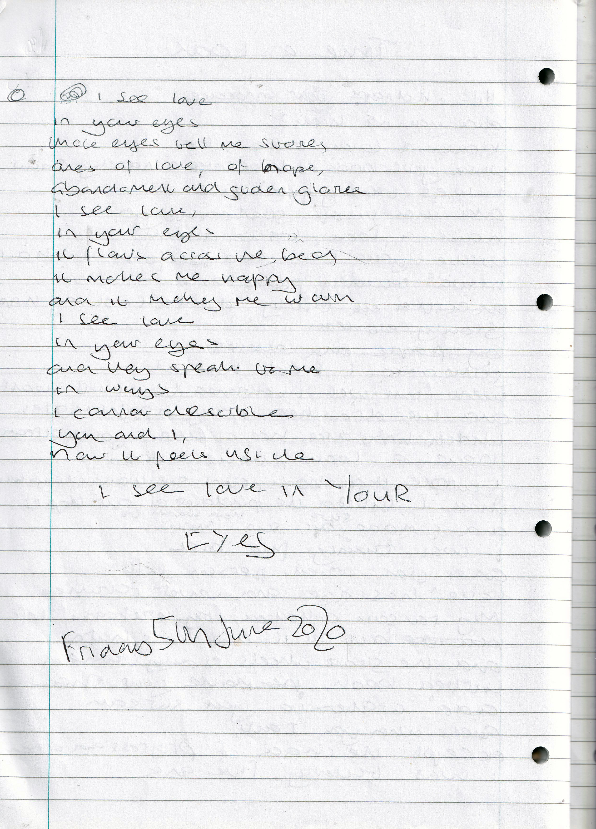 I See Love in Your Eyes – Written Friday 5th June 2020 (Aged 45)
