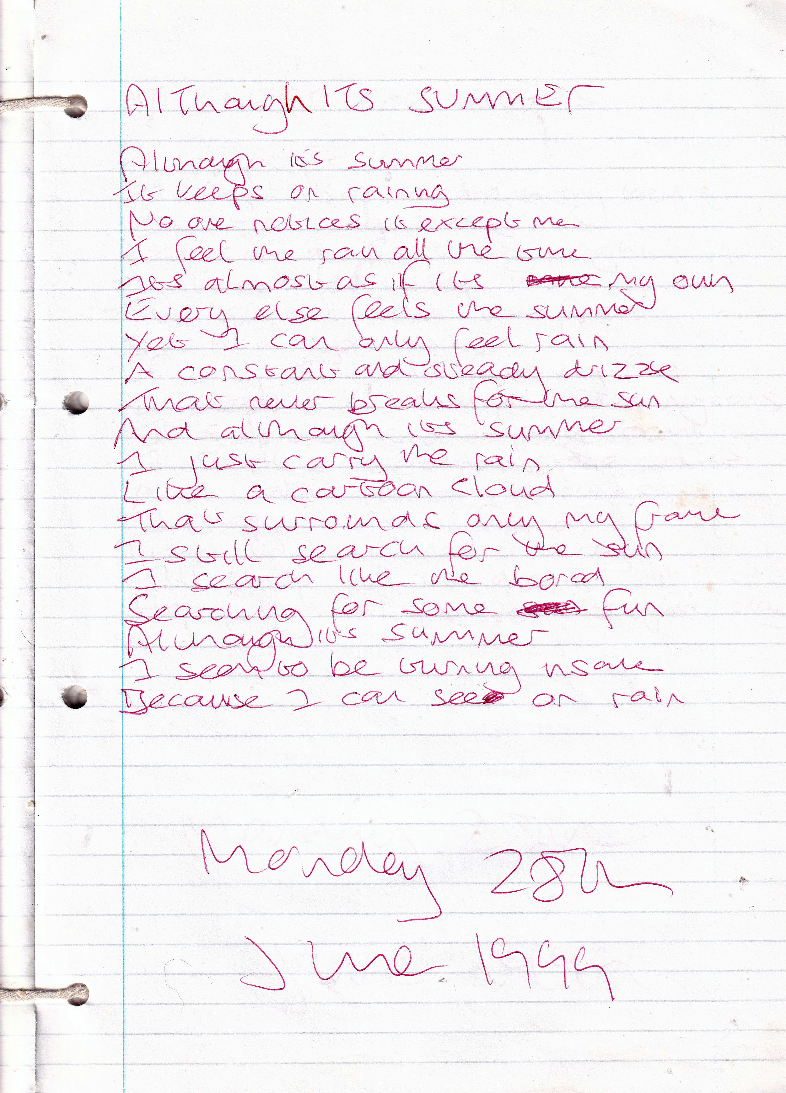 Although It’s Summer – Written Monday 28th June 1999