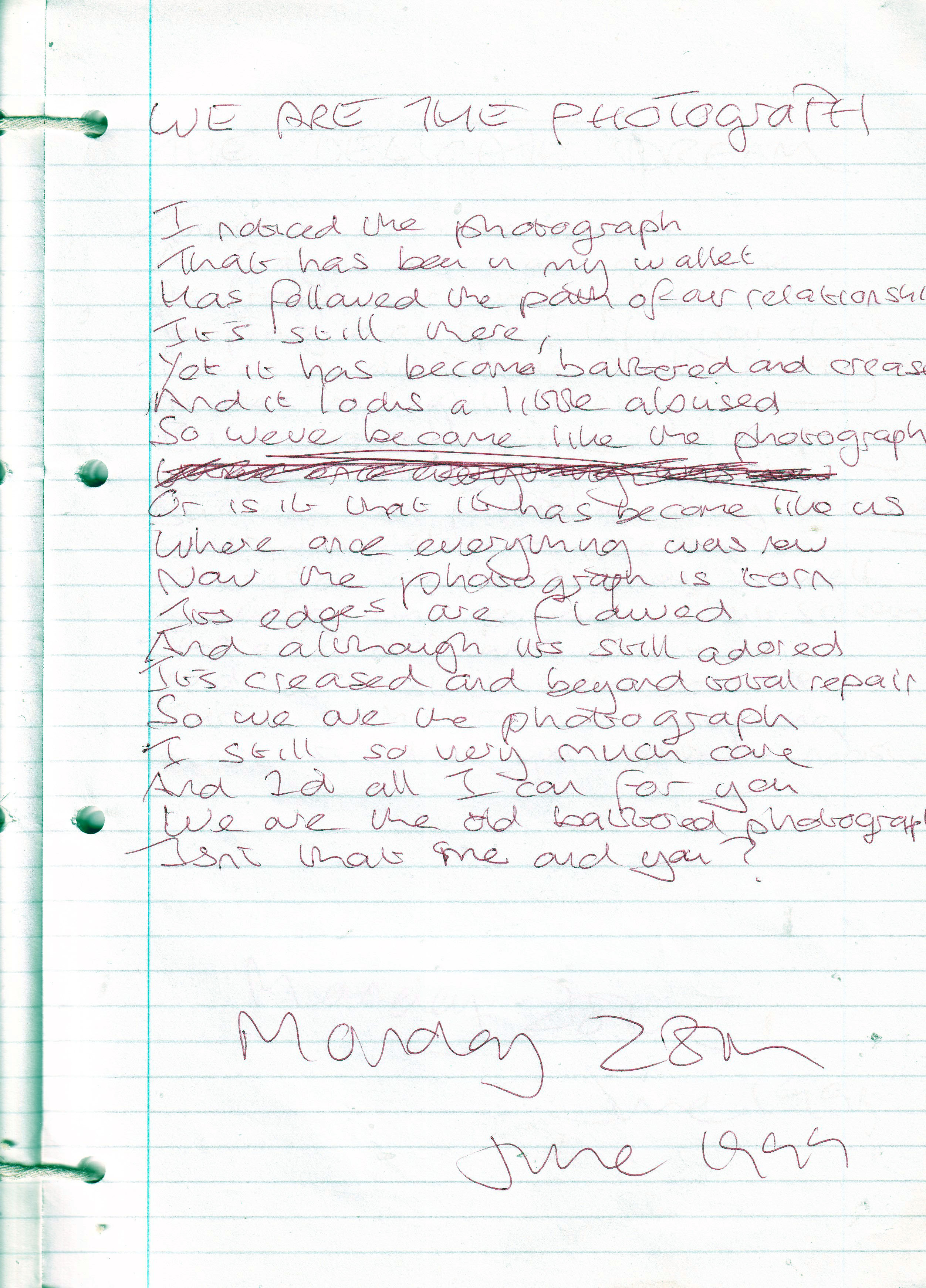 We Are The Photograph – Written Monday 28th July 1999 (Aged 24)