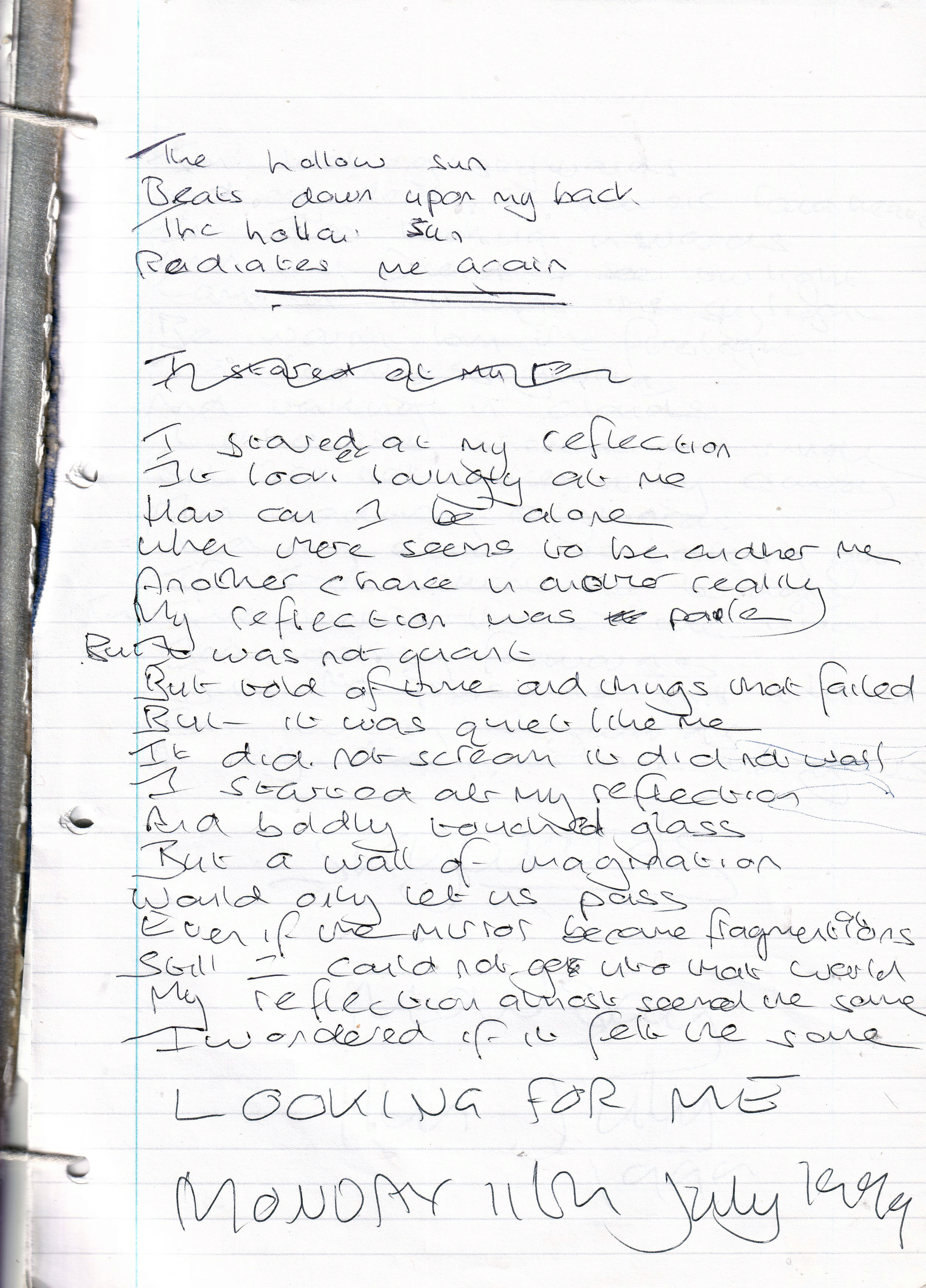Looking For Me – Written Monday 11th July 1999 (Aged 24)