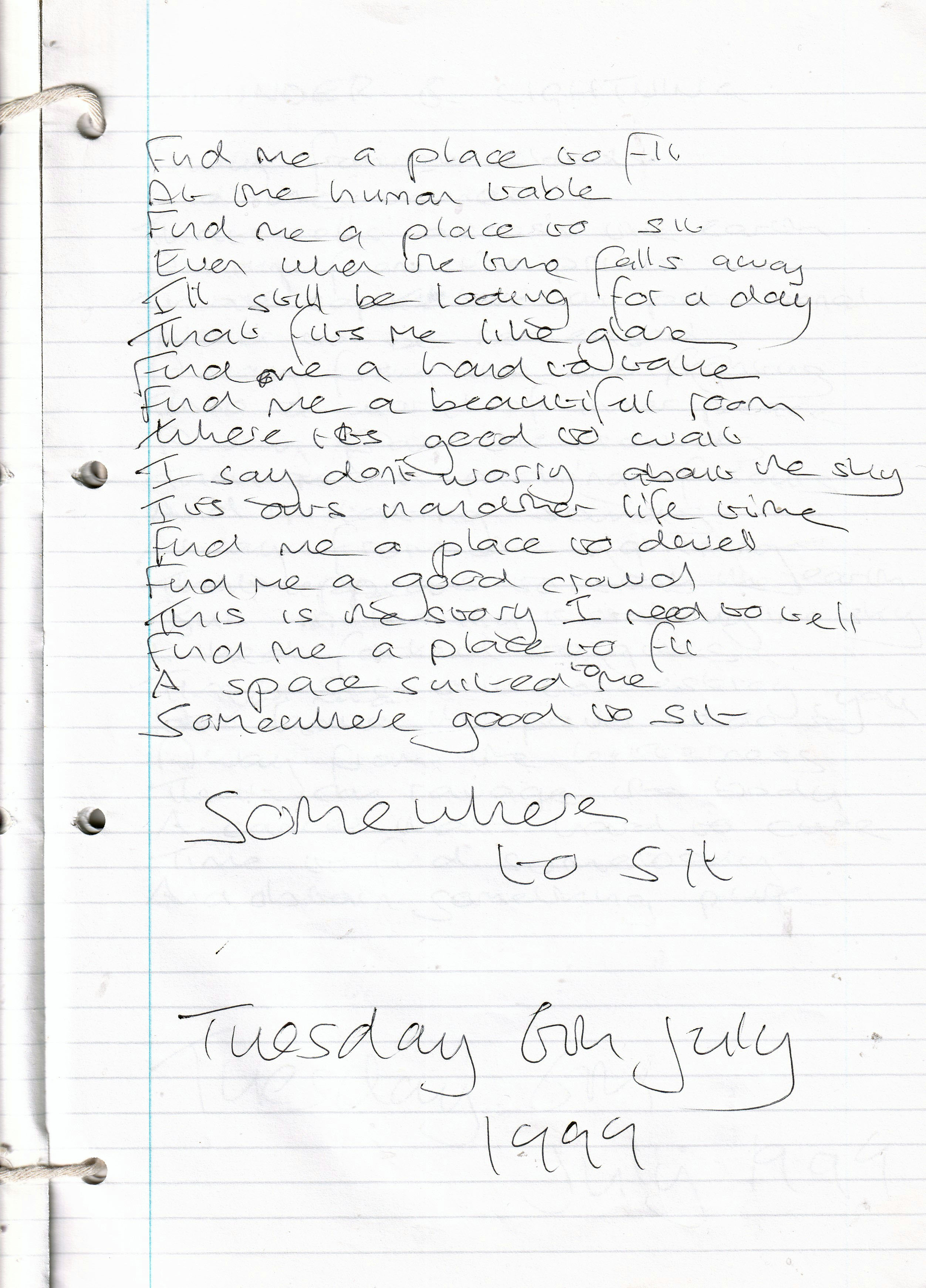 Somewhere to Sit – Written Tuesday 6th July 1999 (Aged 24)