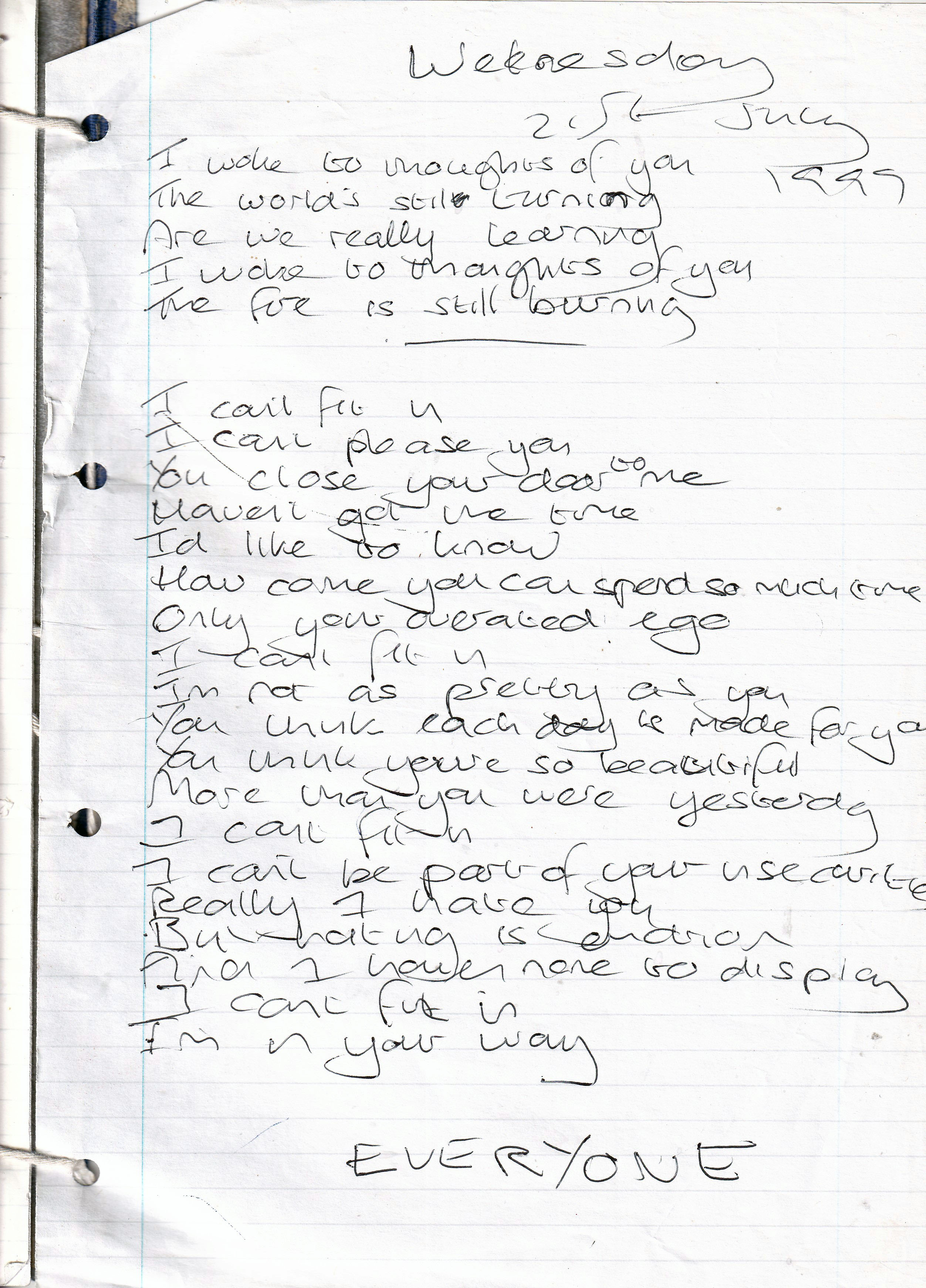 I Am Always in Your Way – Written Wednesday 21st July 1999 (Aged 24)