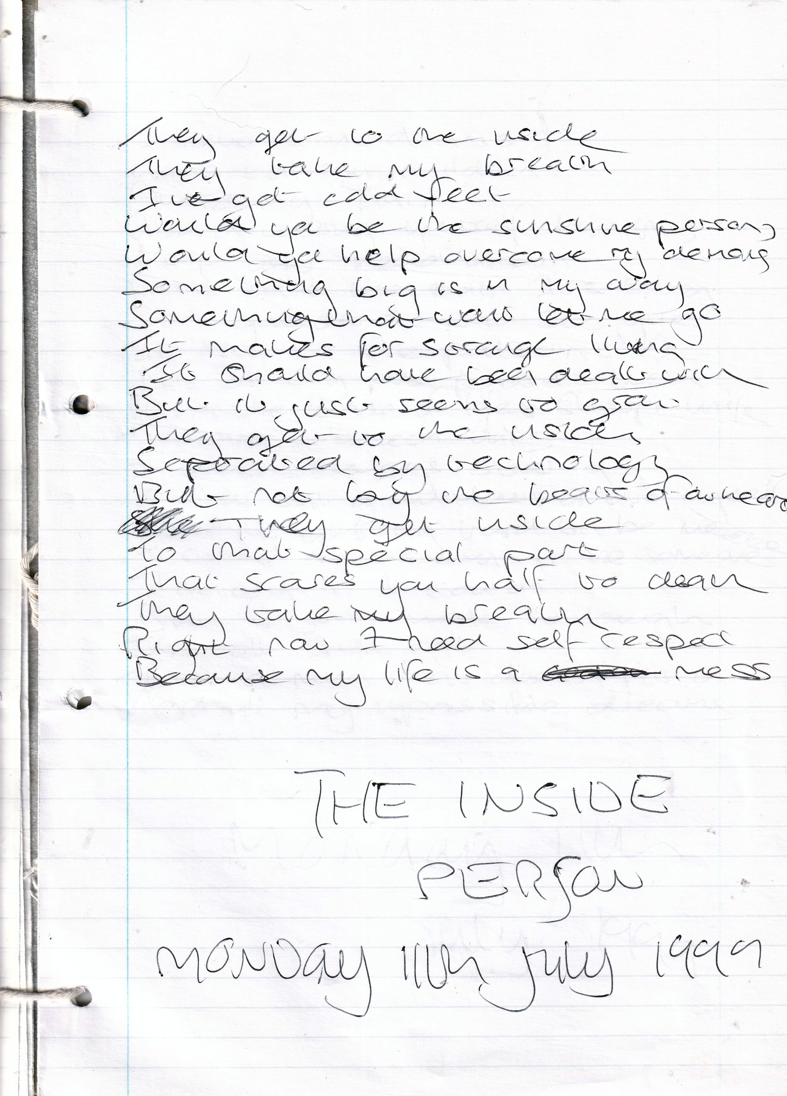 The Inside Person – Monday 11th July 1999 (Aged 24)