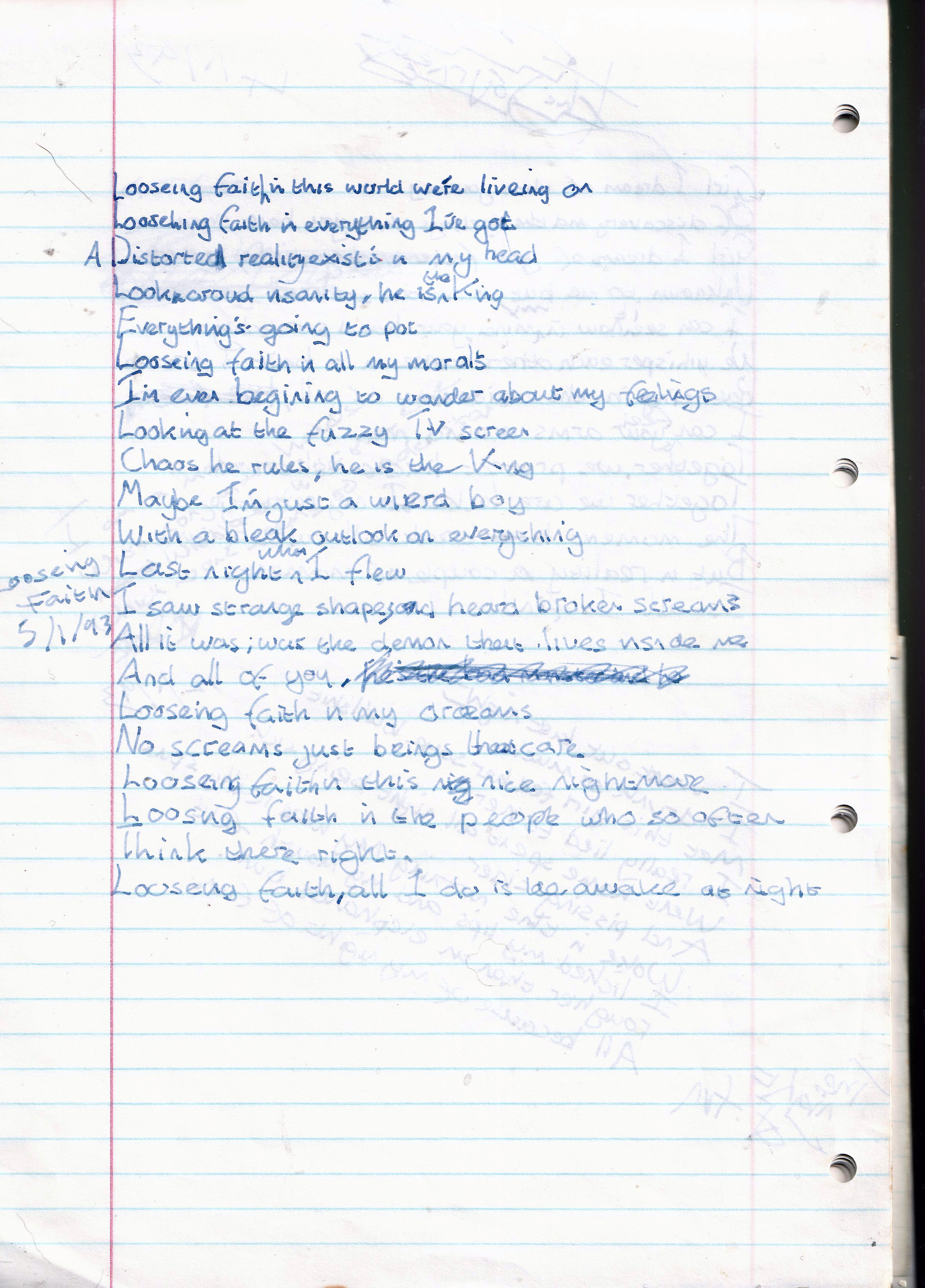 Losing Faith – Written Tuesday 5th January 1993 (Aged 17)
