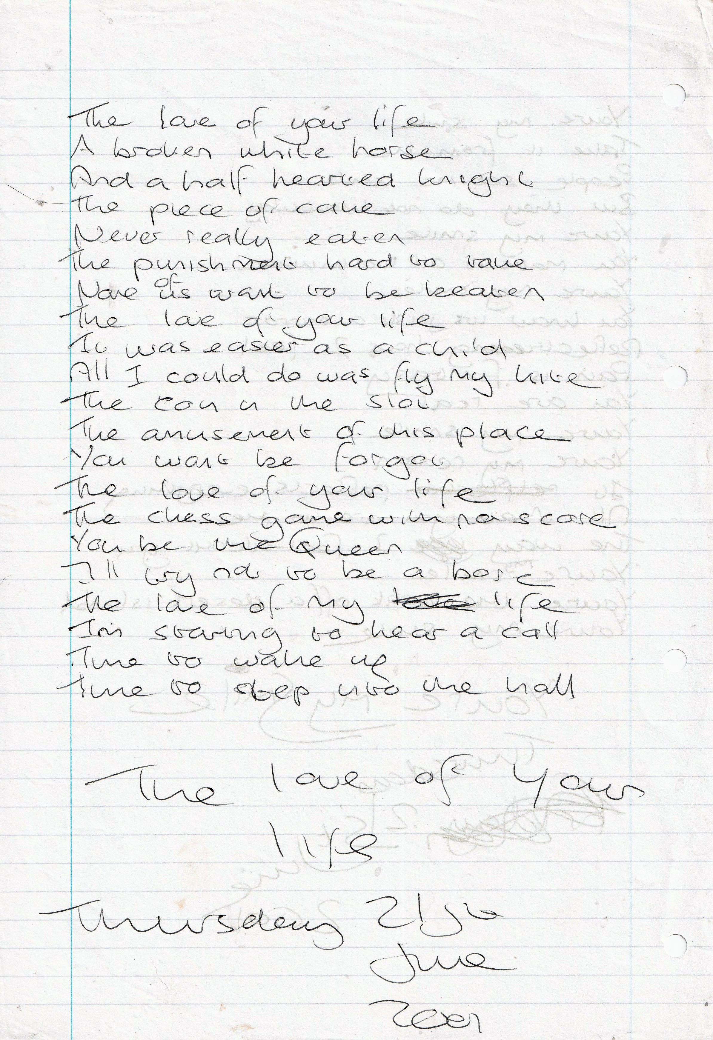 The Love of Your Life – Written Thursday 21st June 2001 (Aged 26)