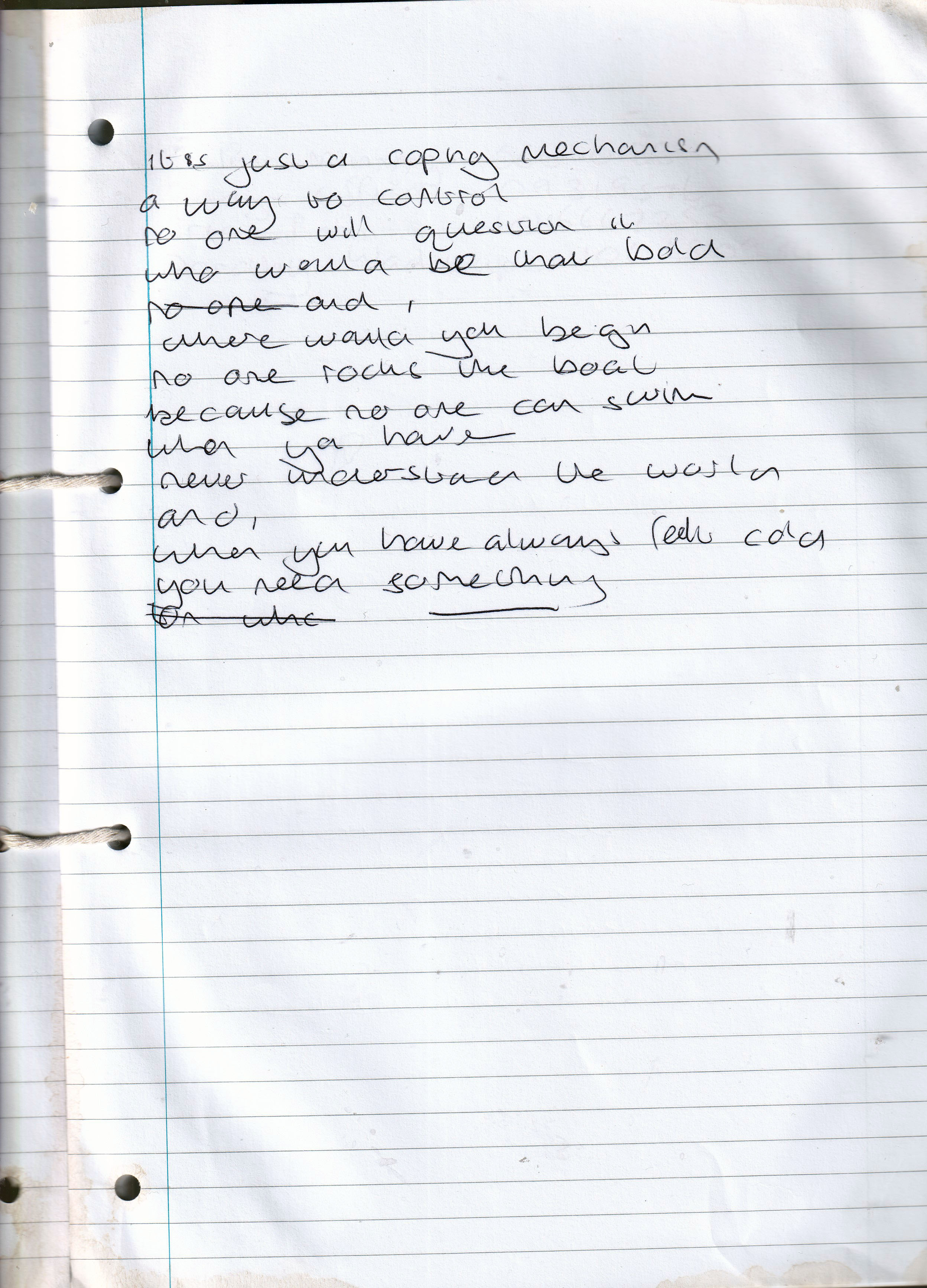 Coping Mechanism (Originally Untitled) – Written January 2013 (Aged 37)