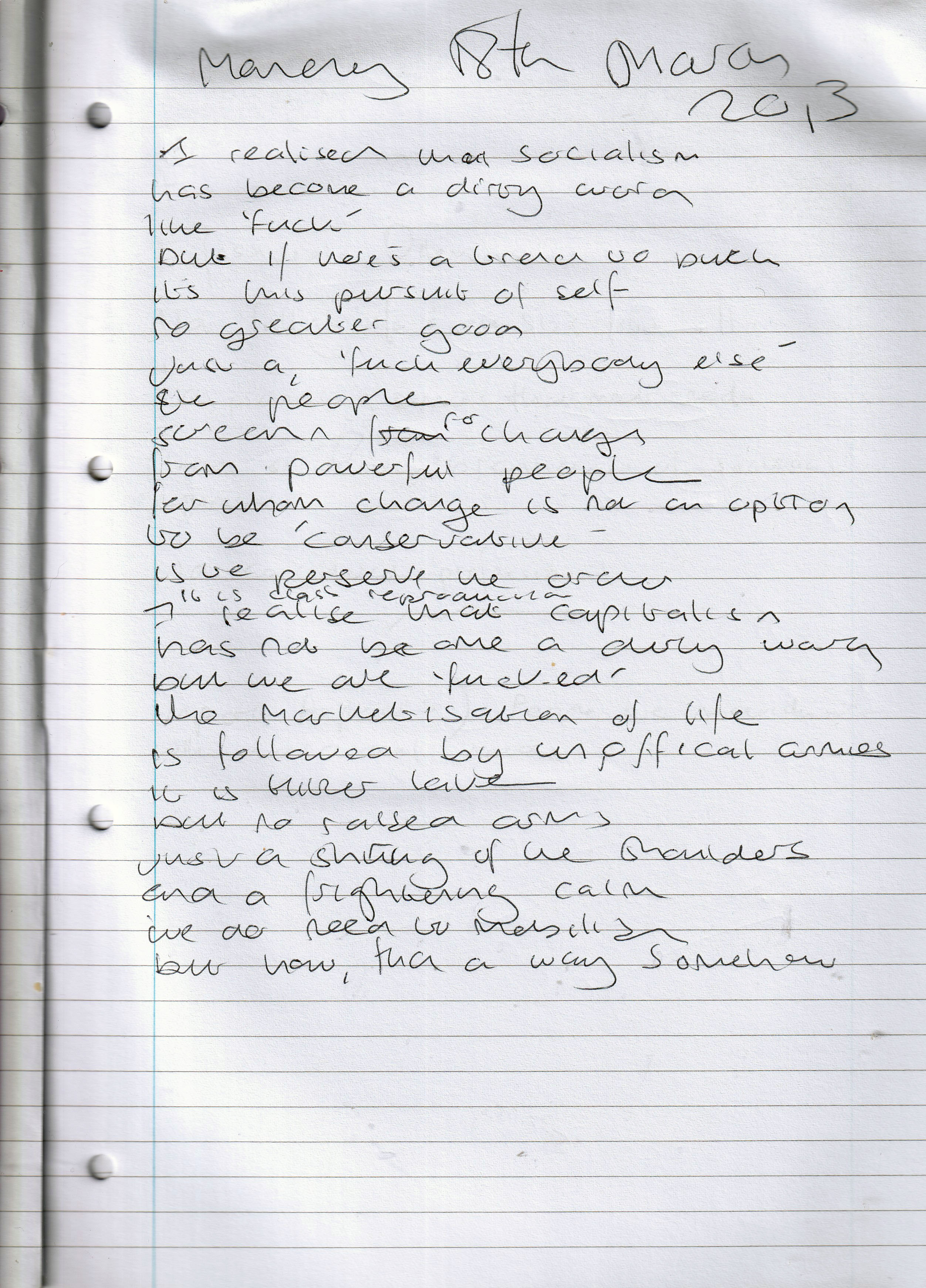 Socialism Has Become a Dirty Word (Originally Untitled) – Written Monday 18th March 2013 (Aged 38)