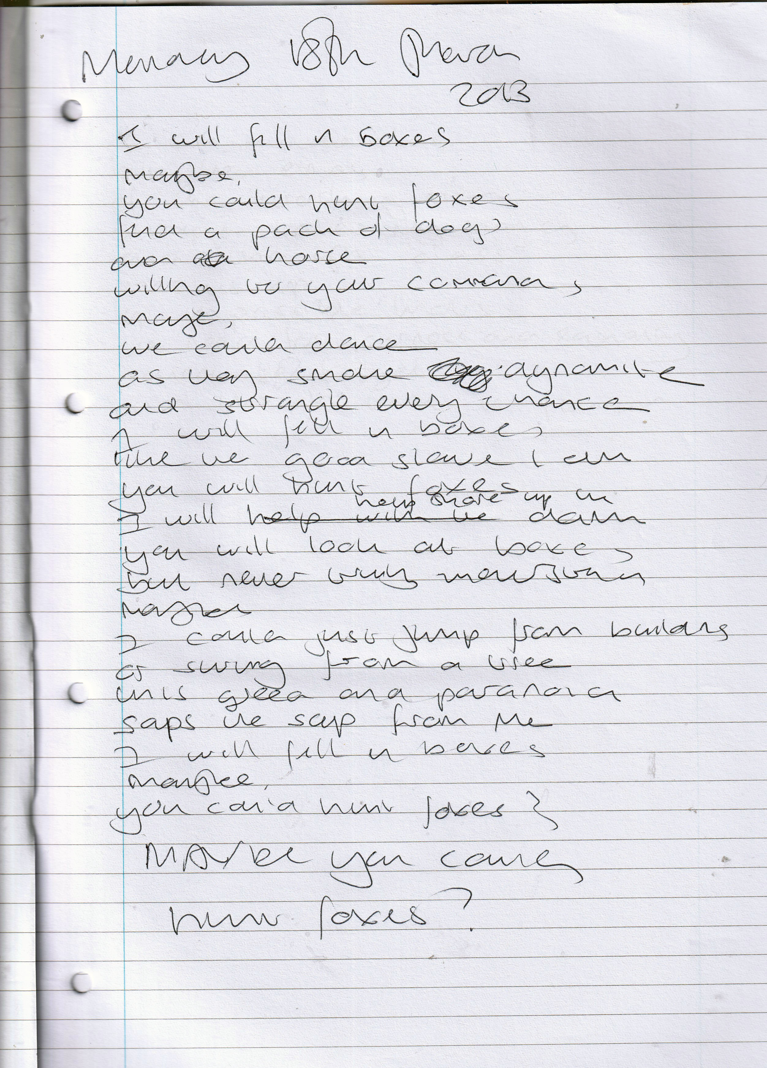Maybe You Could Hunt Foxes? – Written Monday 18th March 2013 (Aged 38)