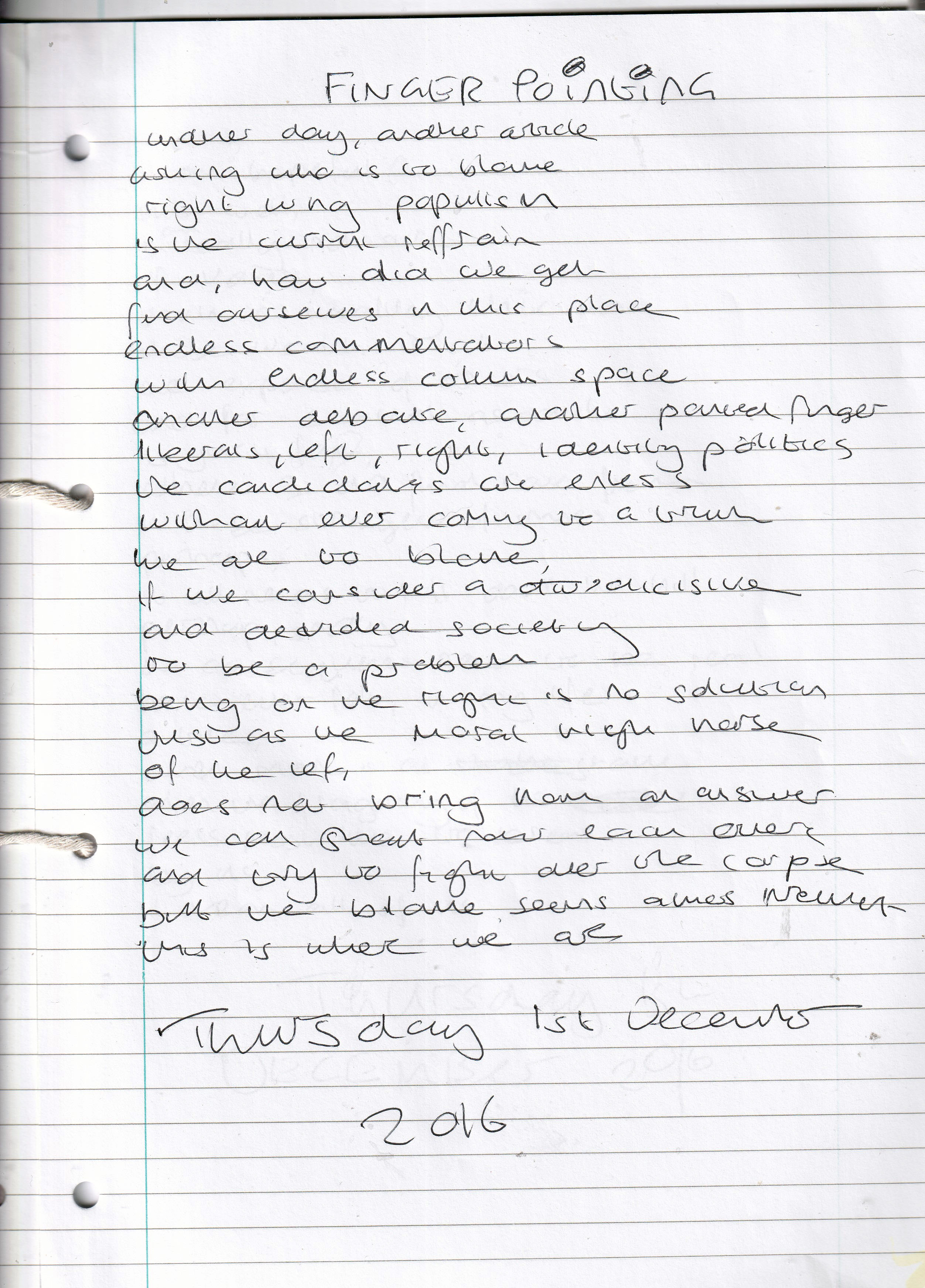Finger Pointing – Written Thursday 1st December 2016 (Aged 41)