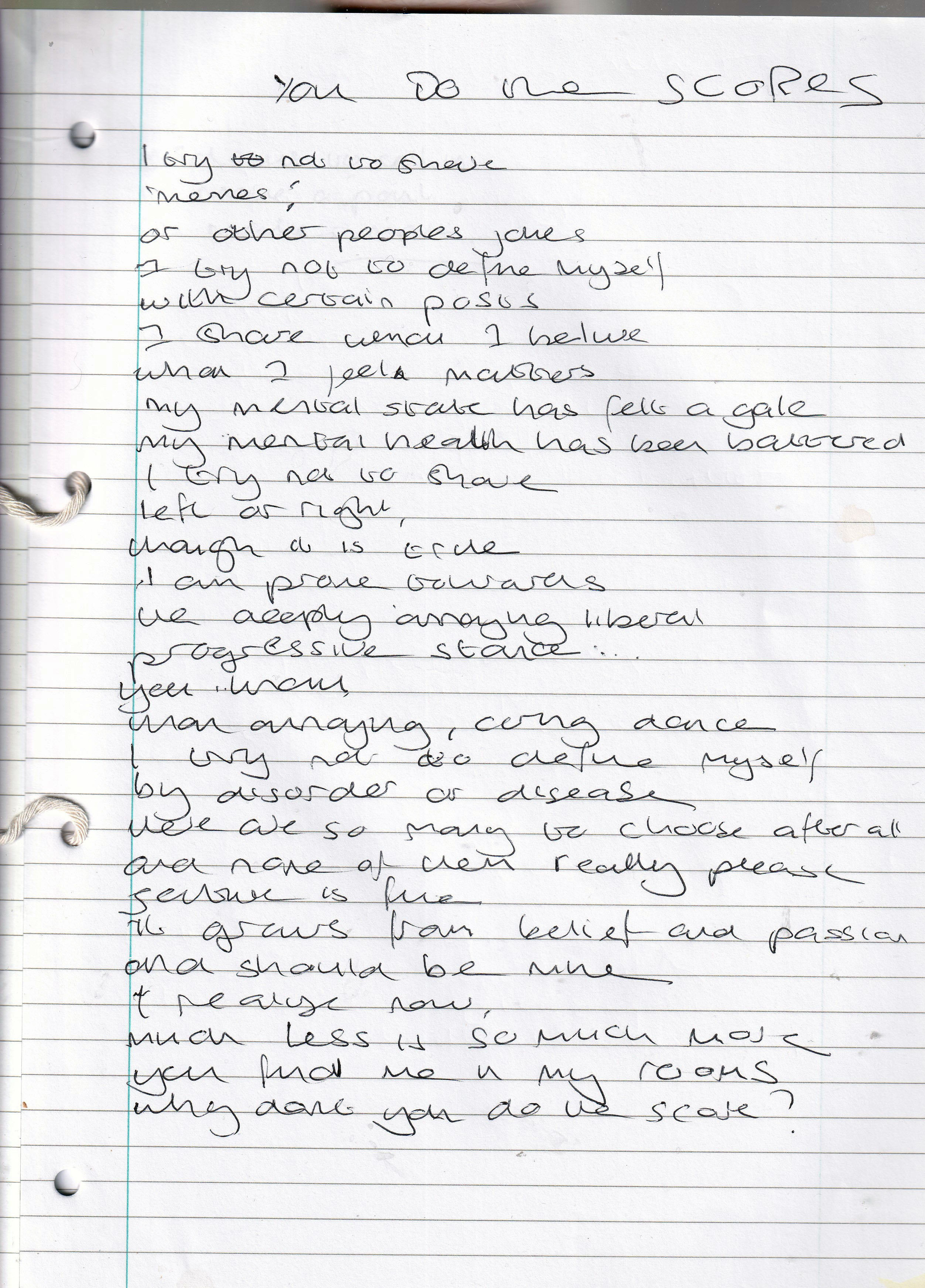 You Do the Scores – Written Wednesday 7th December 2016 (Aged 41)