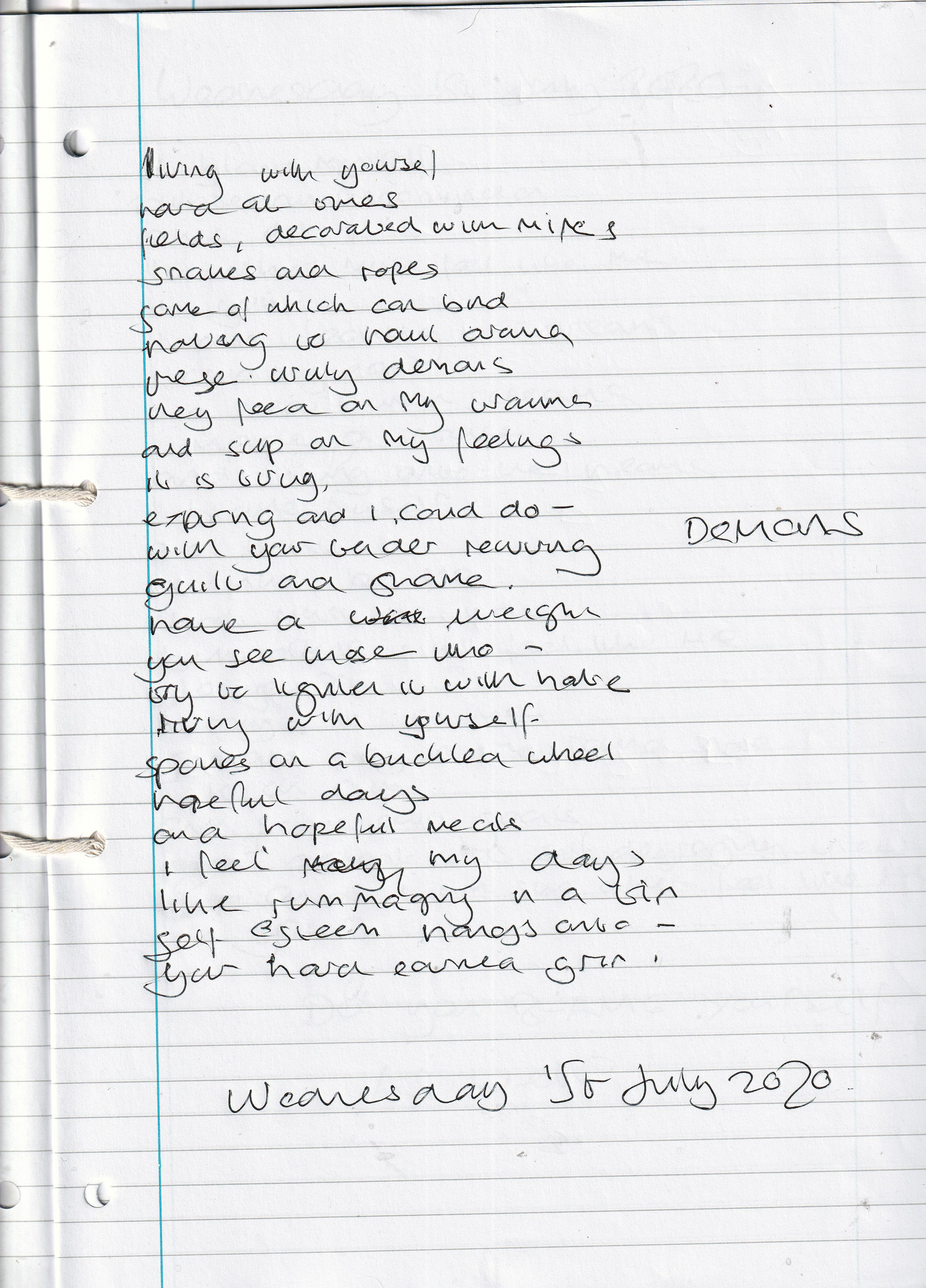 Unruly Demons – Written Wednesday 1st July 2020 (Aged 45)