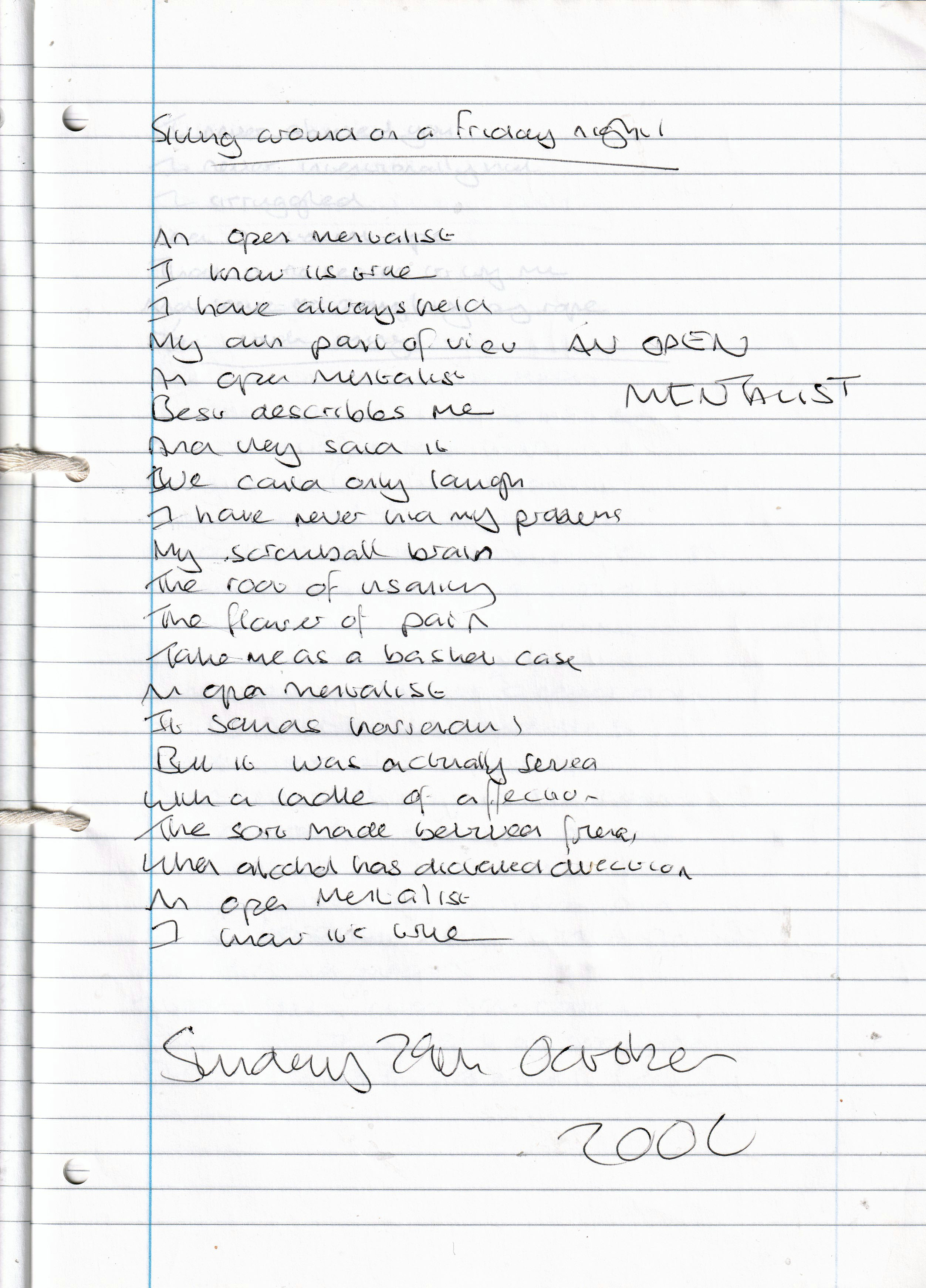 An Open Mentalist – Written Sunday 29th October 2006 (Aged 31)