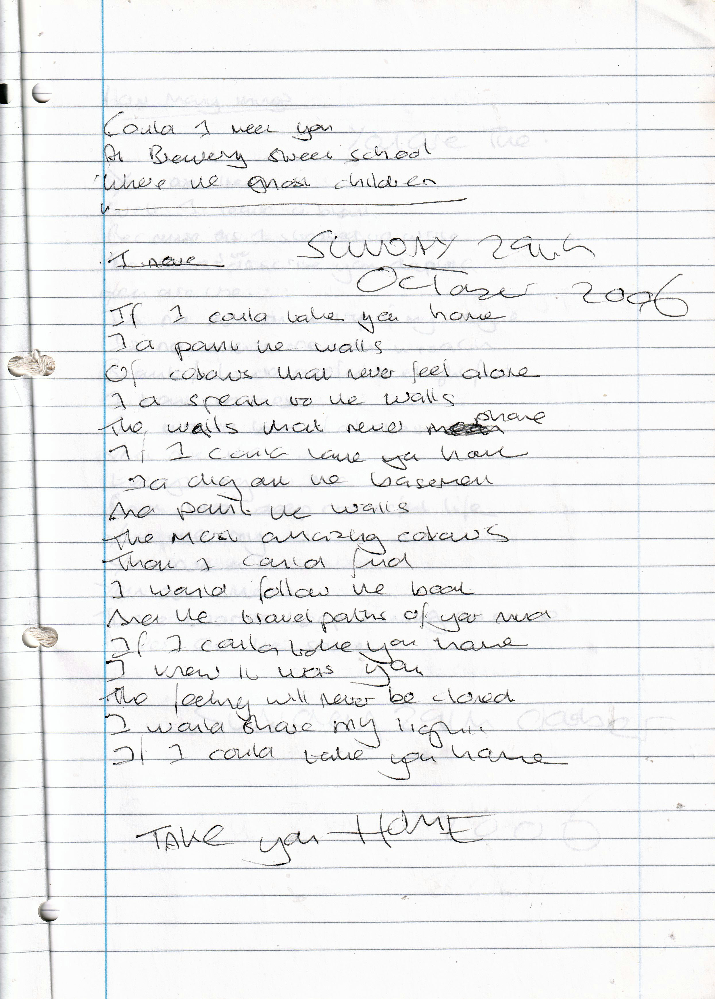 Take You Home – Written Sunday 29th October 2006 (Aged 31)