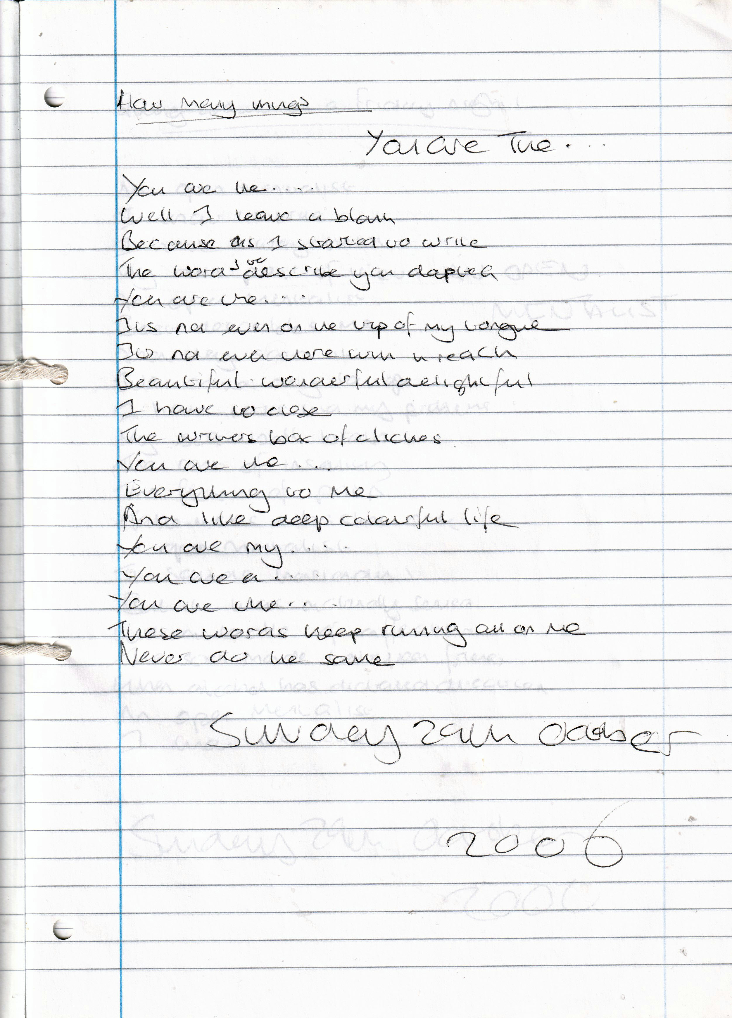 You Are The… – Written Sunday 29th October 2006 (Aged 31)