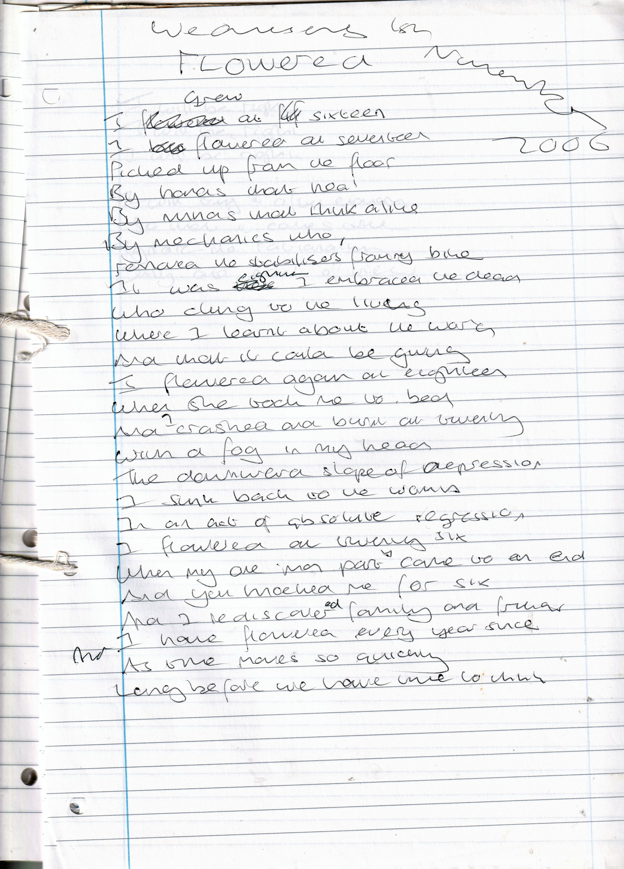 Flowered – Written Wednesday 1st November 2006 (Aged 31)