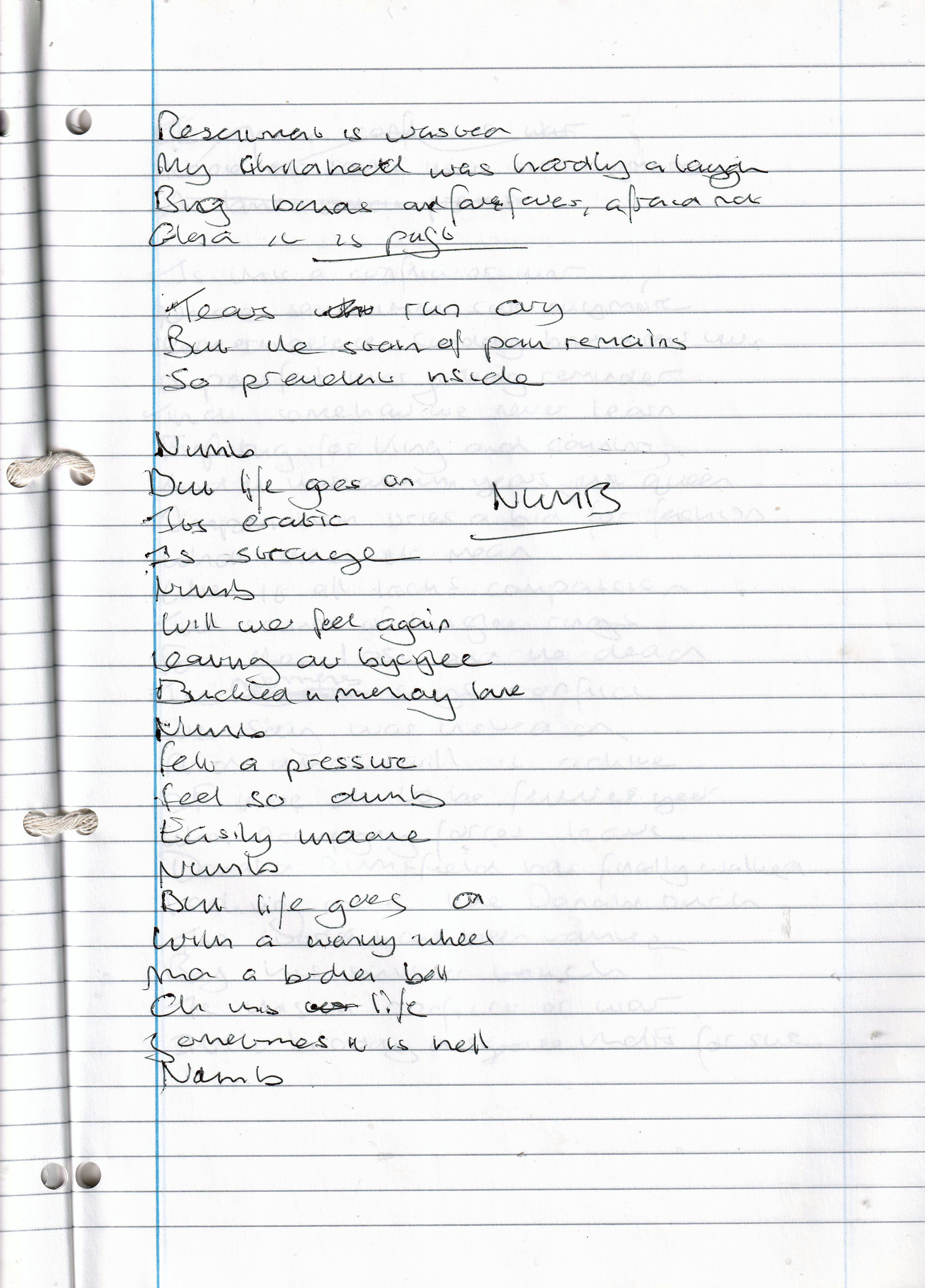 Numb – Written November 2006 (Aged 31)
