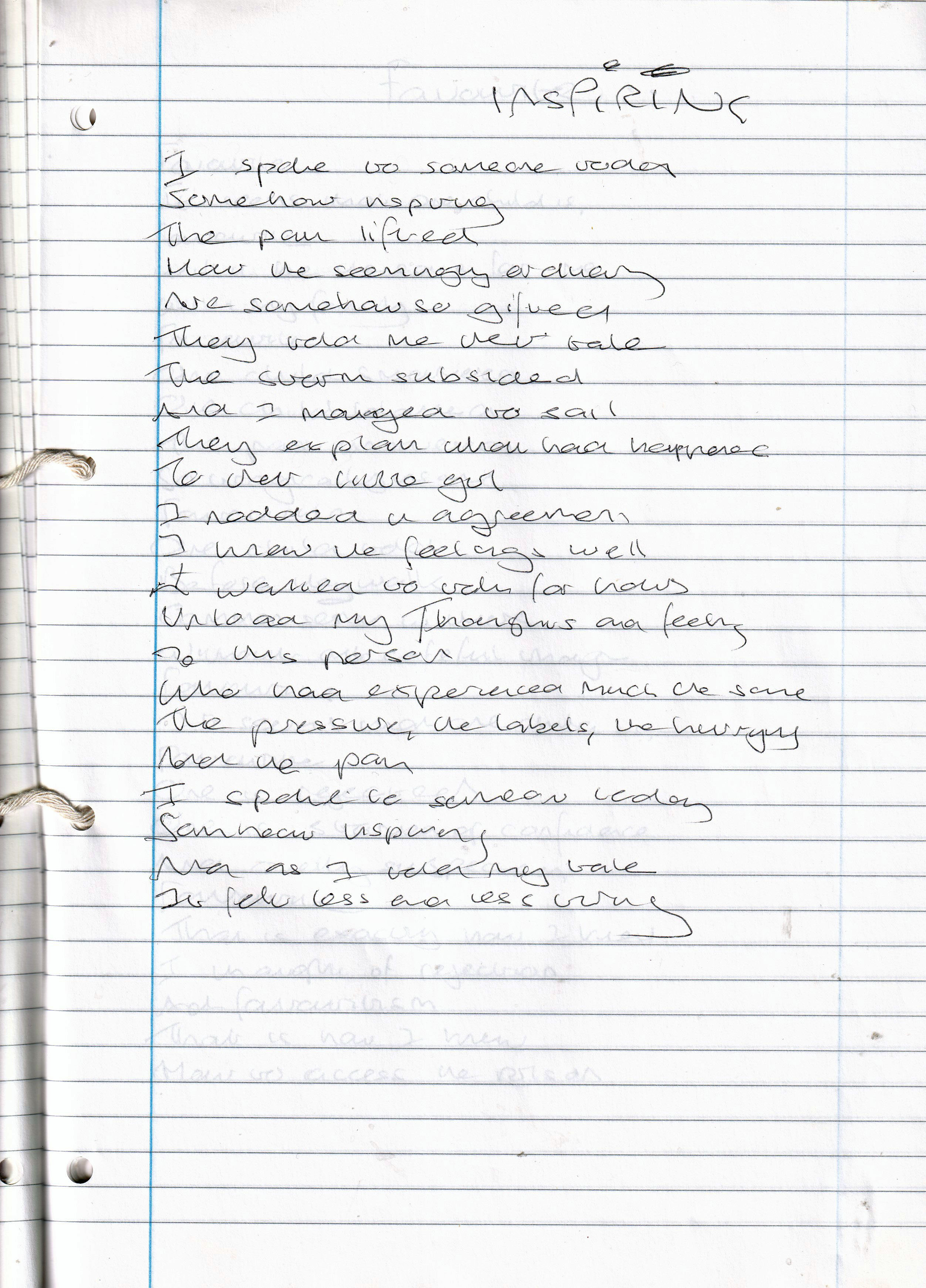 Inspiring – Written November 2006 (Aged 31)