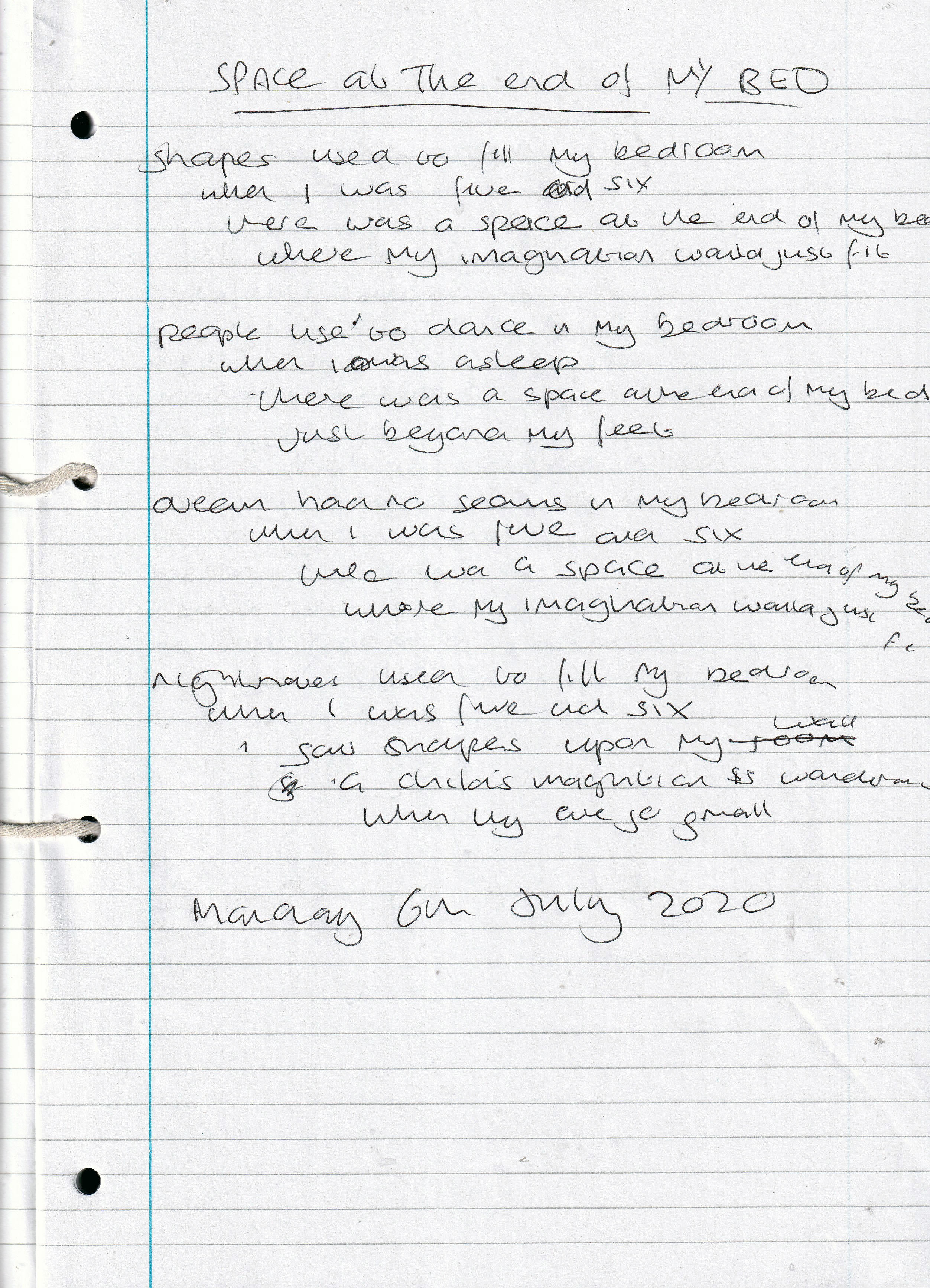 Space At The End of My Bed – Written Monday 6th July 2020 (Aged 45)
