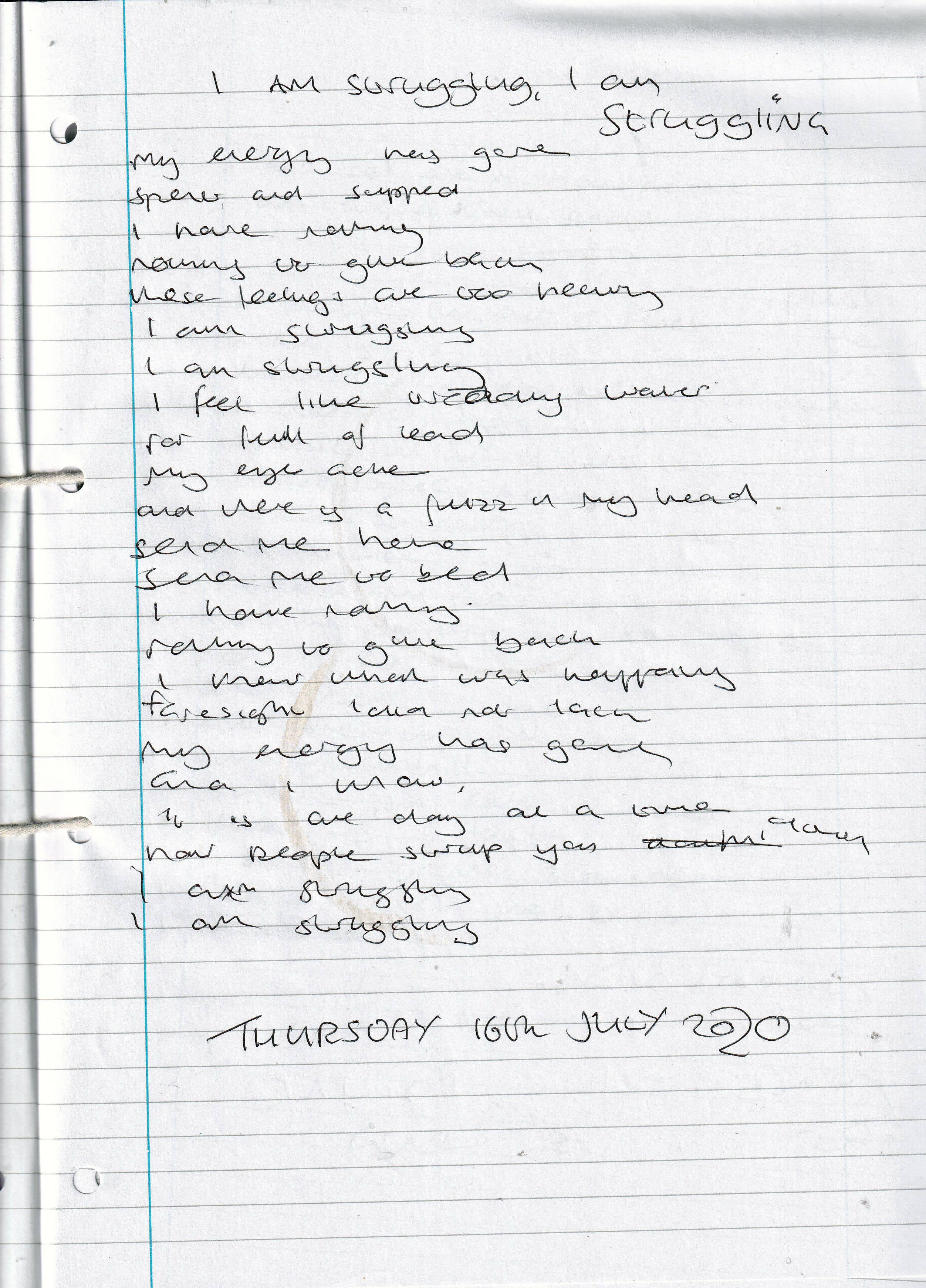 I Am Struggling, I Am Struggling – Written Thursday 16th July 2020 (Aged 45)