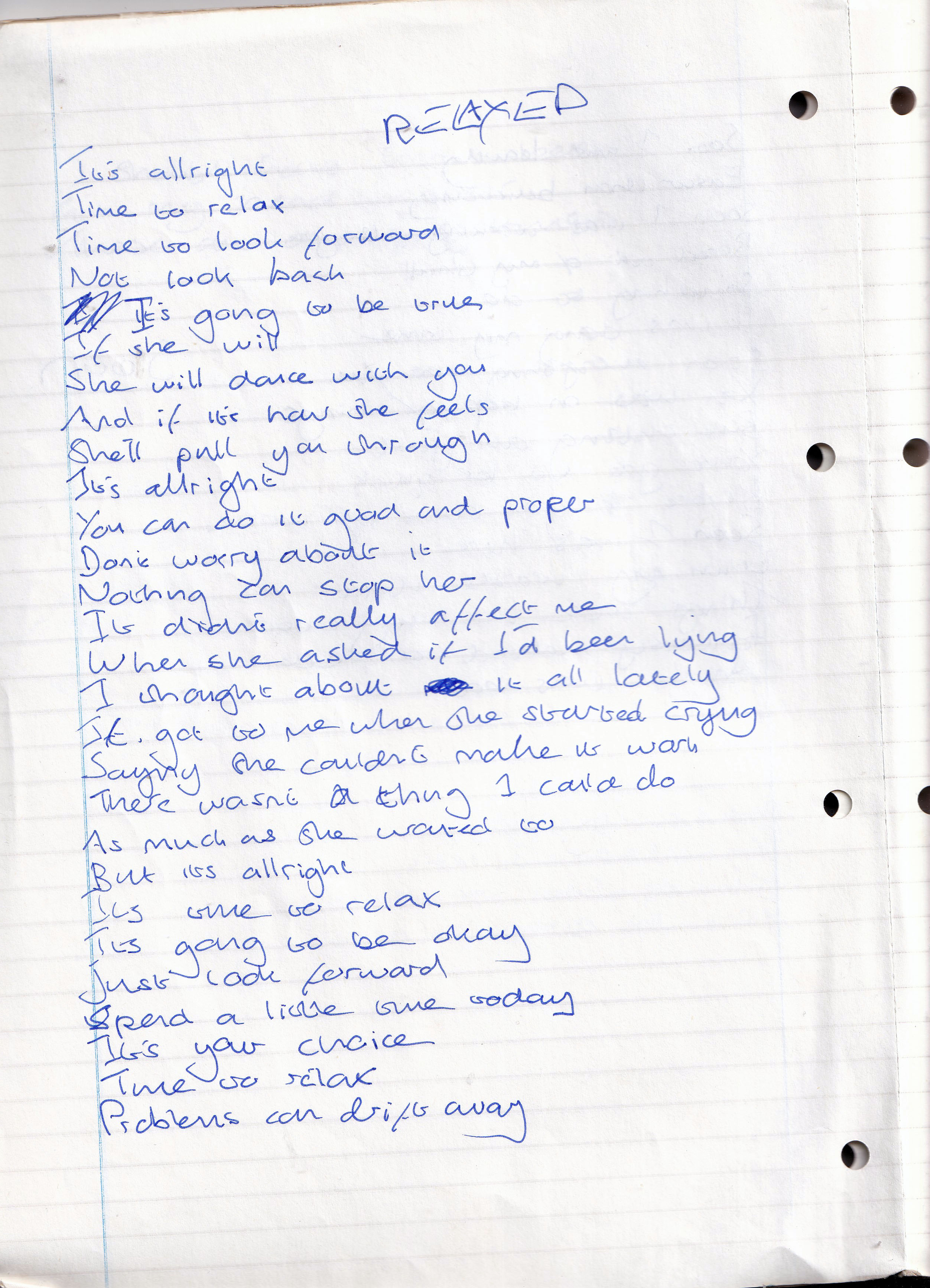 Relaxed – Written Between February and June 1995 (Aged 20)