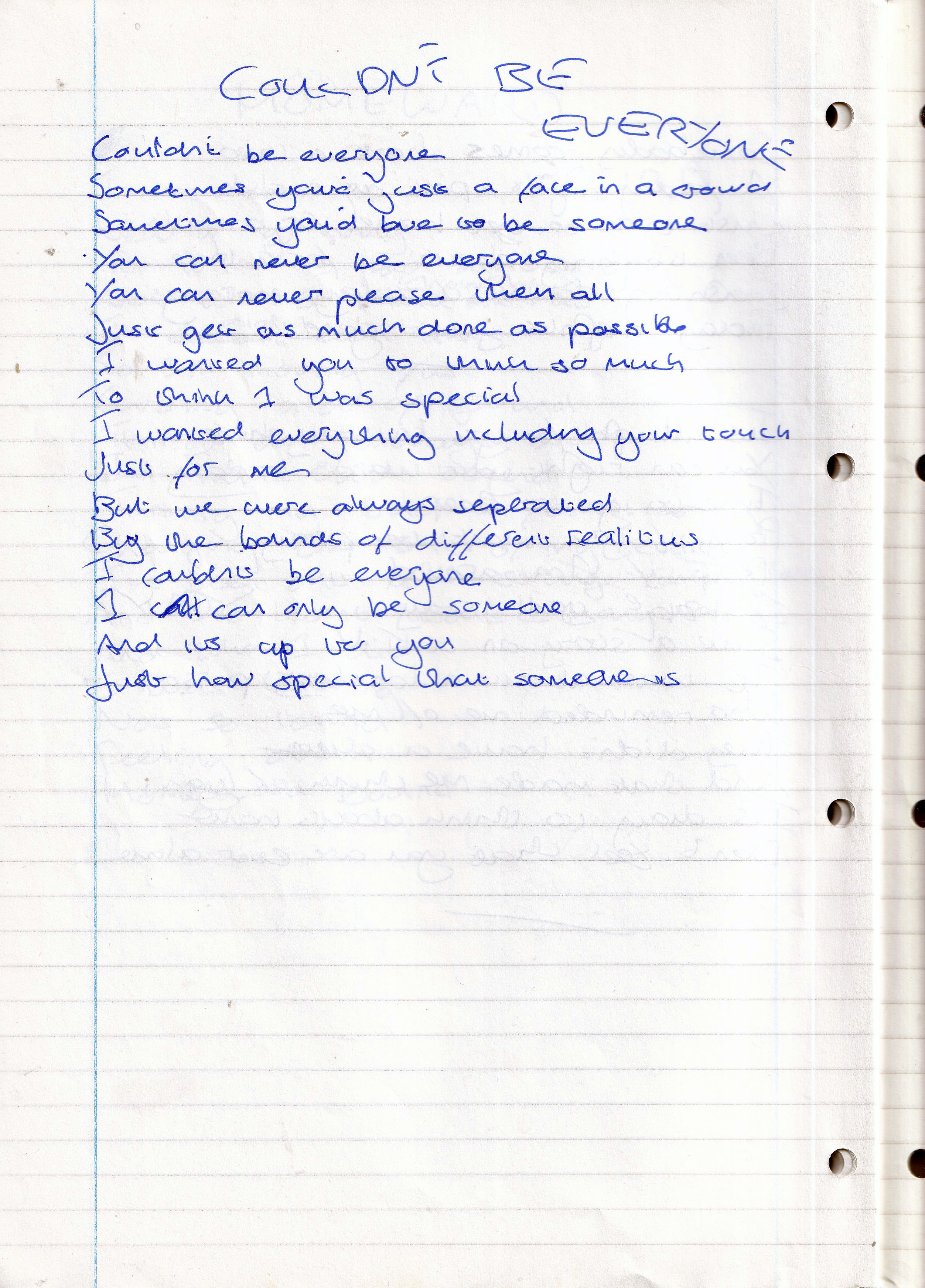 Couldn’t Be Everyone – Written Between February and June 1995 (Aged 20)
