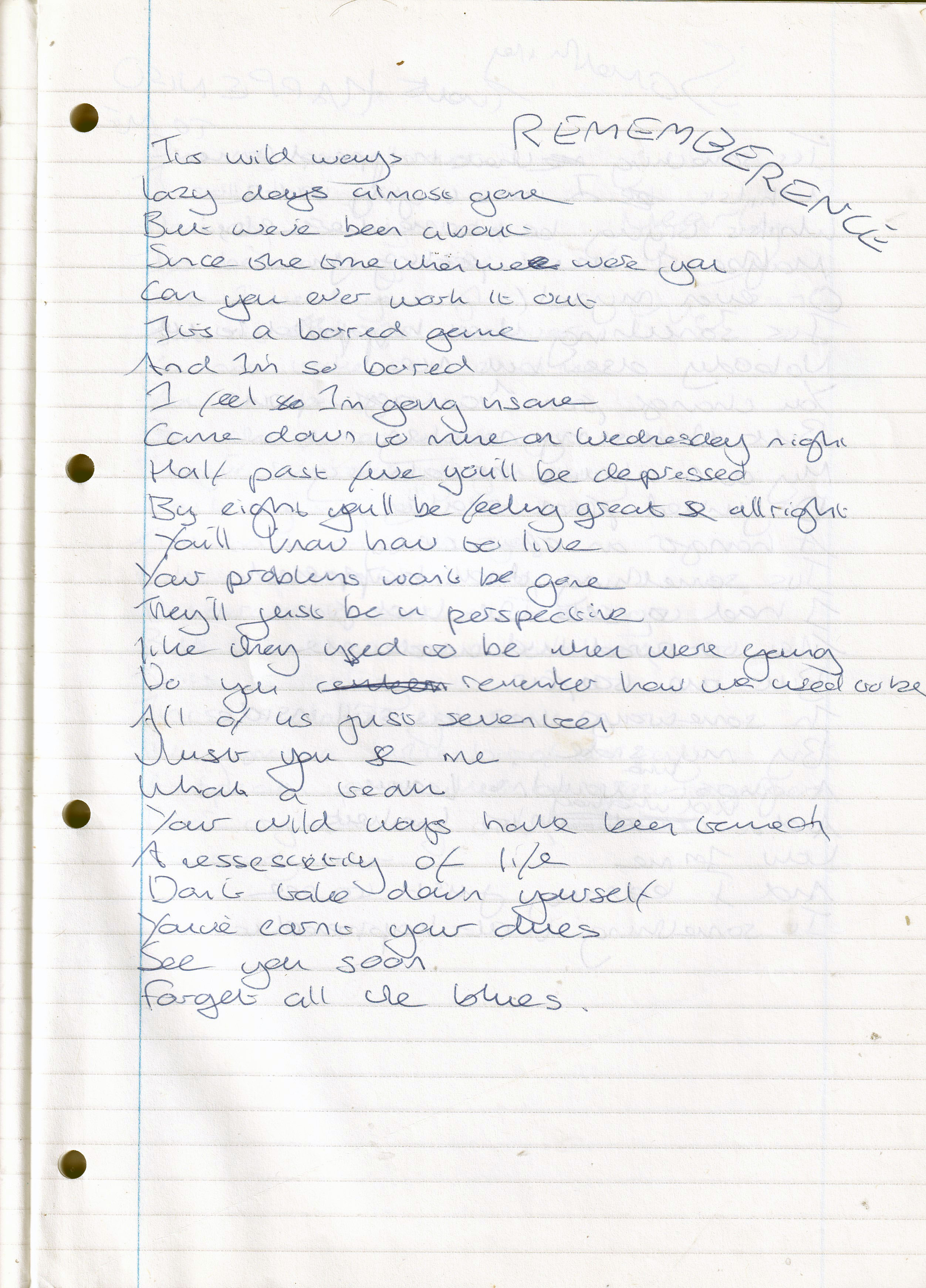 Remembrance – Written Between February and June 1995 (Aged 20)