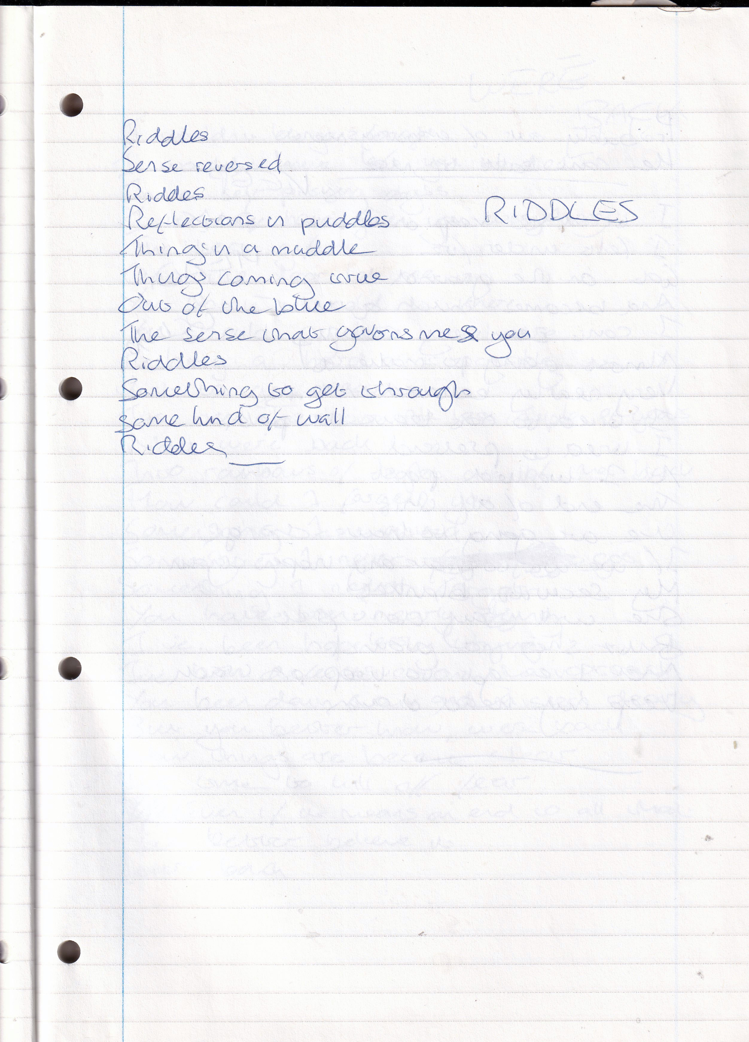 Riddles – Written Between February and June 1995 (Aged 20)