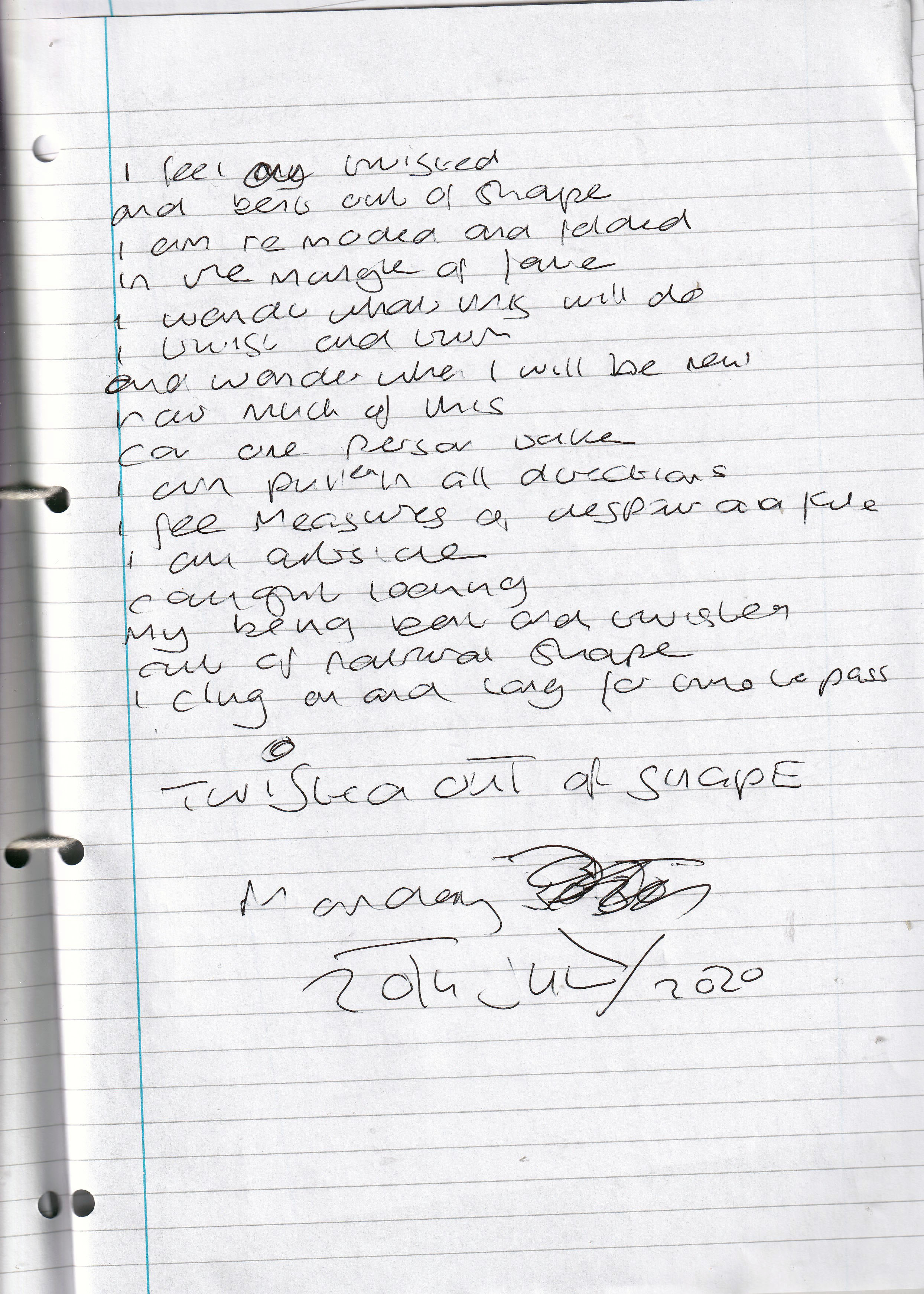 Twisted Out of Shape – Written Monday 20th July 2020 (Aged 45)