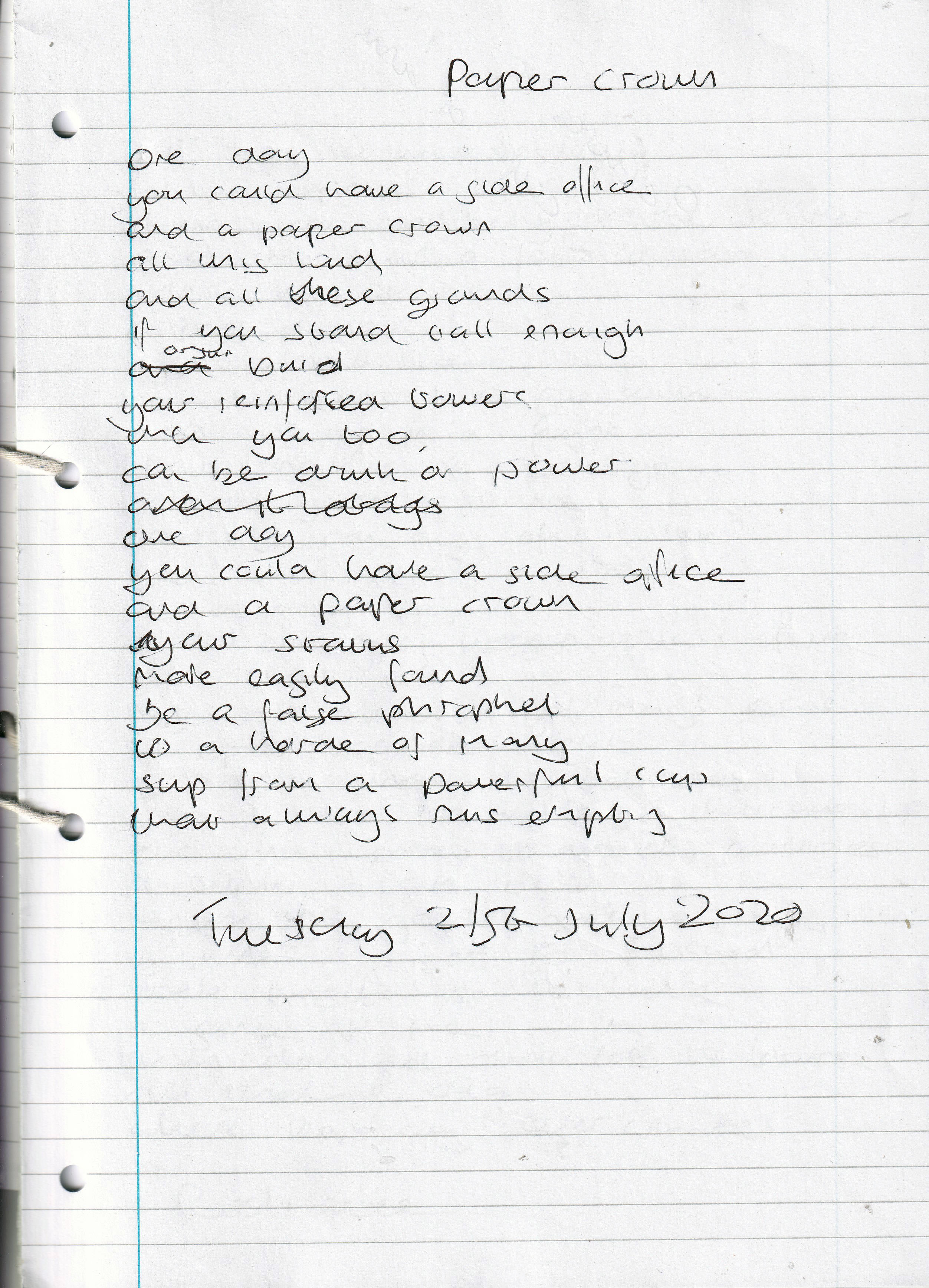 Paper Crown – Written Tuesday 21st July 2020 (Aged 45)