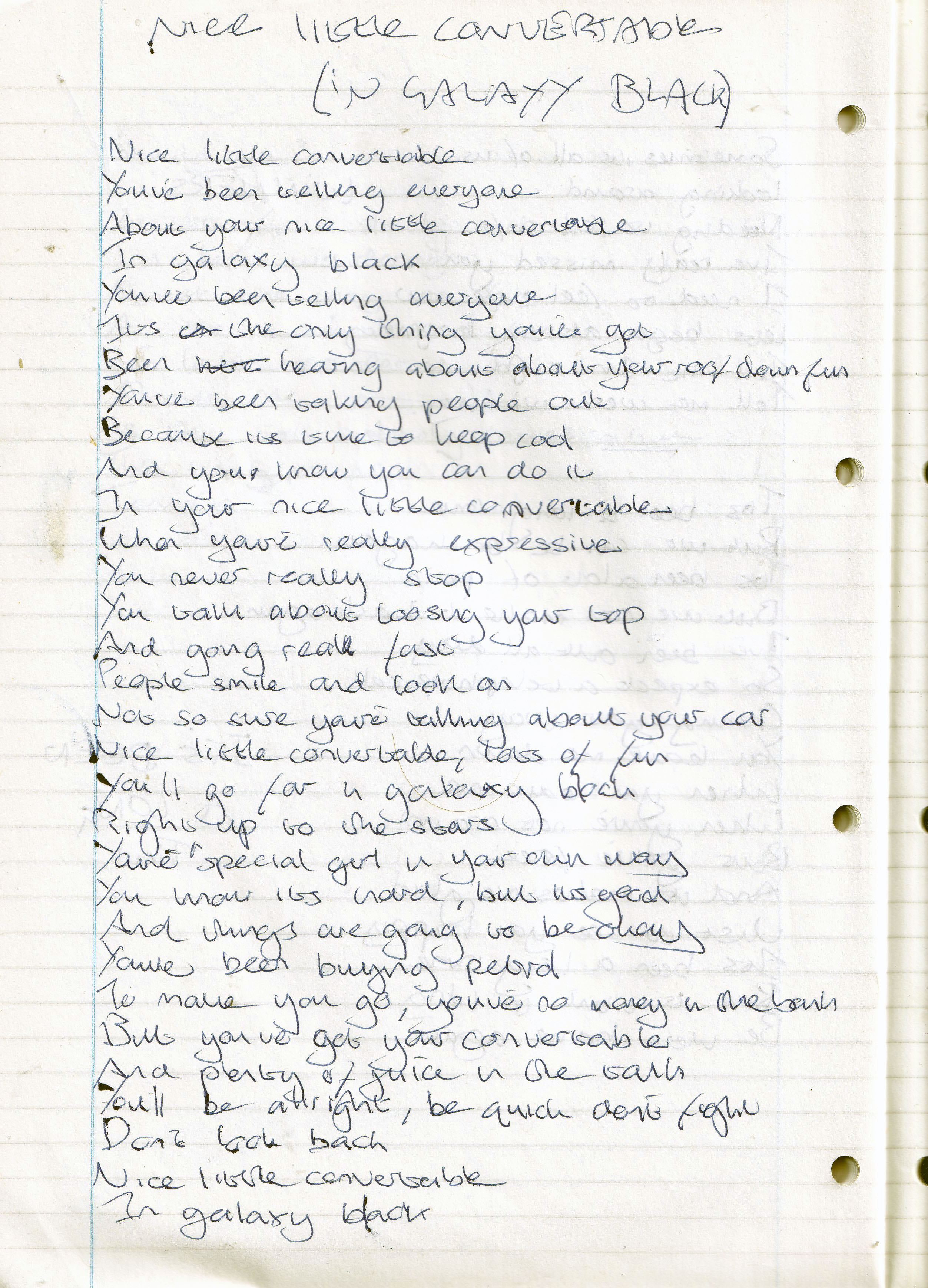 Nice Little Convertible (In Galaxy Black) – Written Between February and June 1995 (Aged 20)