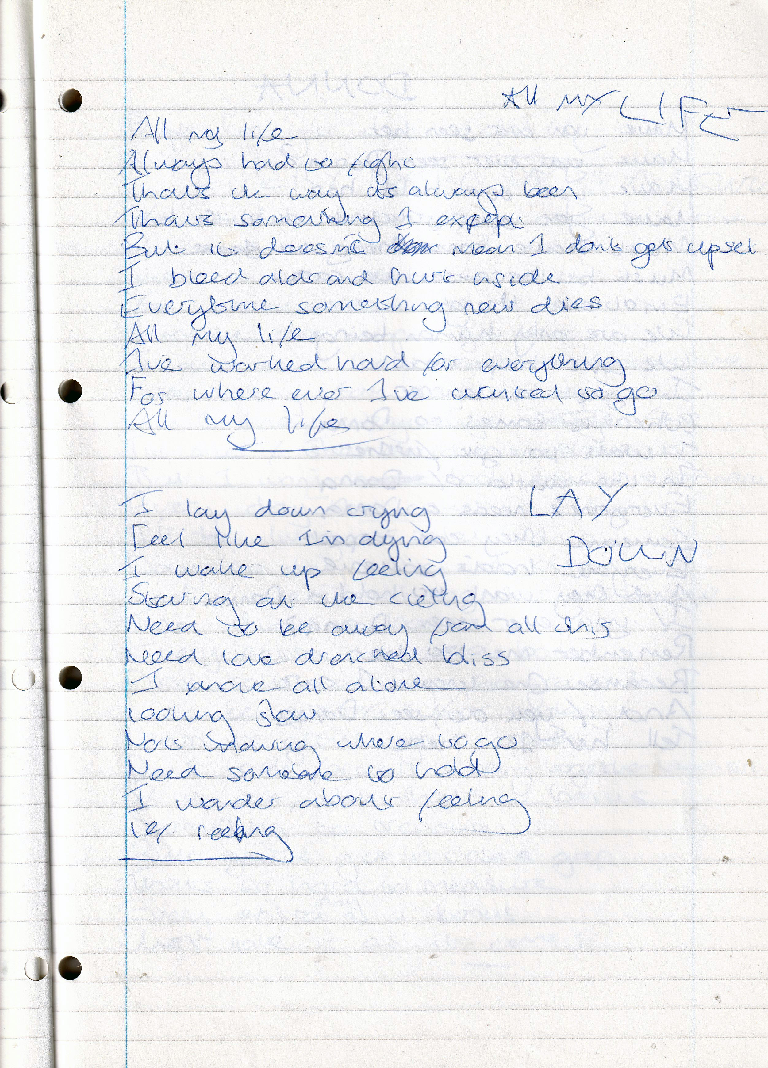 All My Life – Written Between February and June 1995 (Aged 20)
