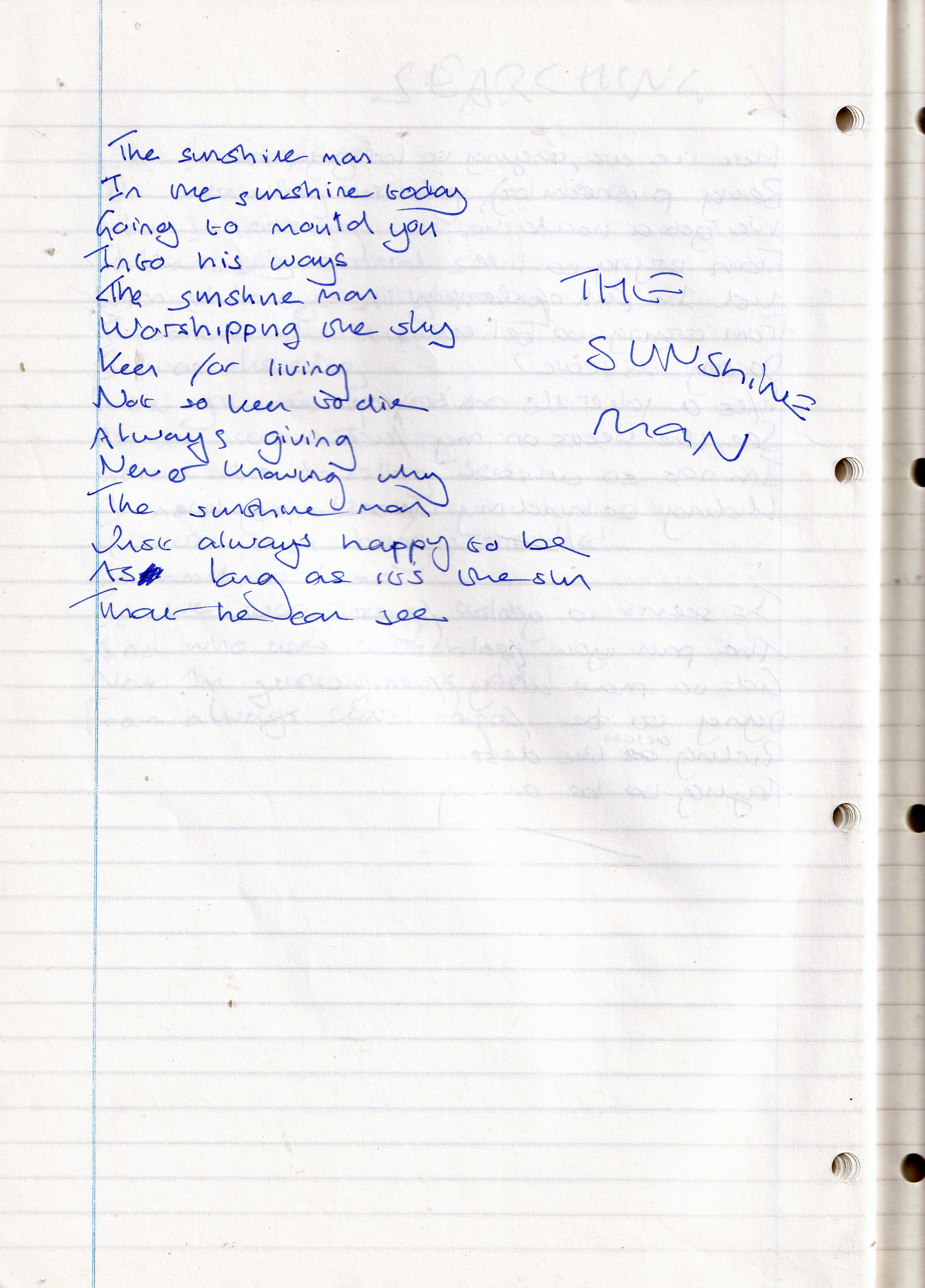 The Sunshine Man – Written Between February and June 1995 (Aged 20)