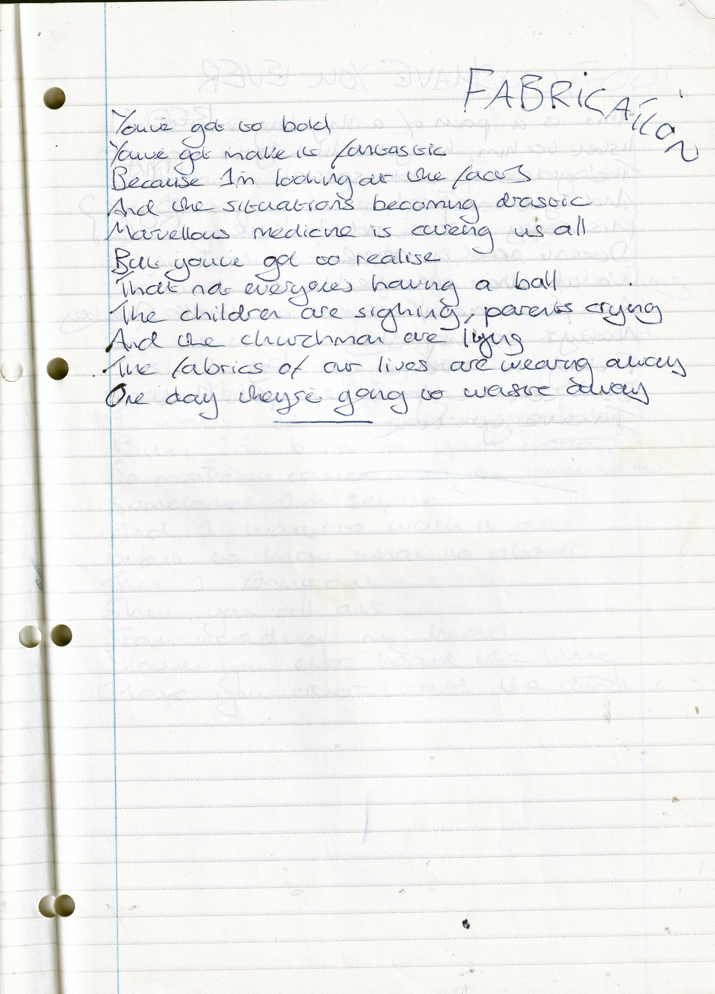 Fabrication – Written Between February and June 1995 (Aged 20)