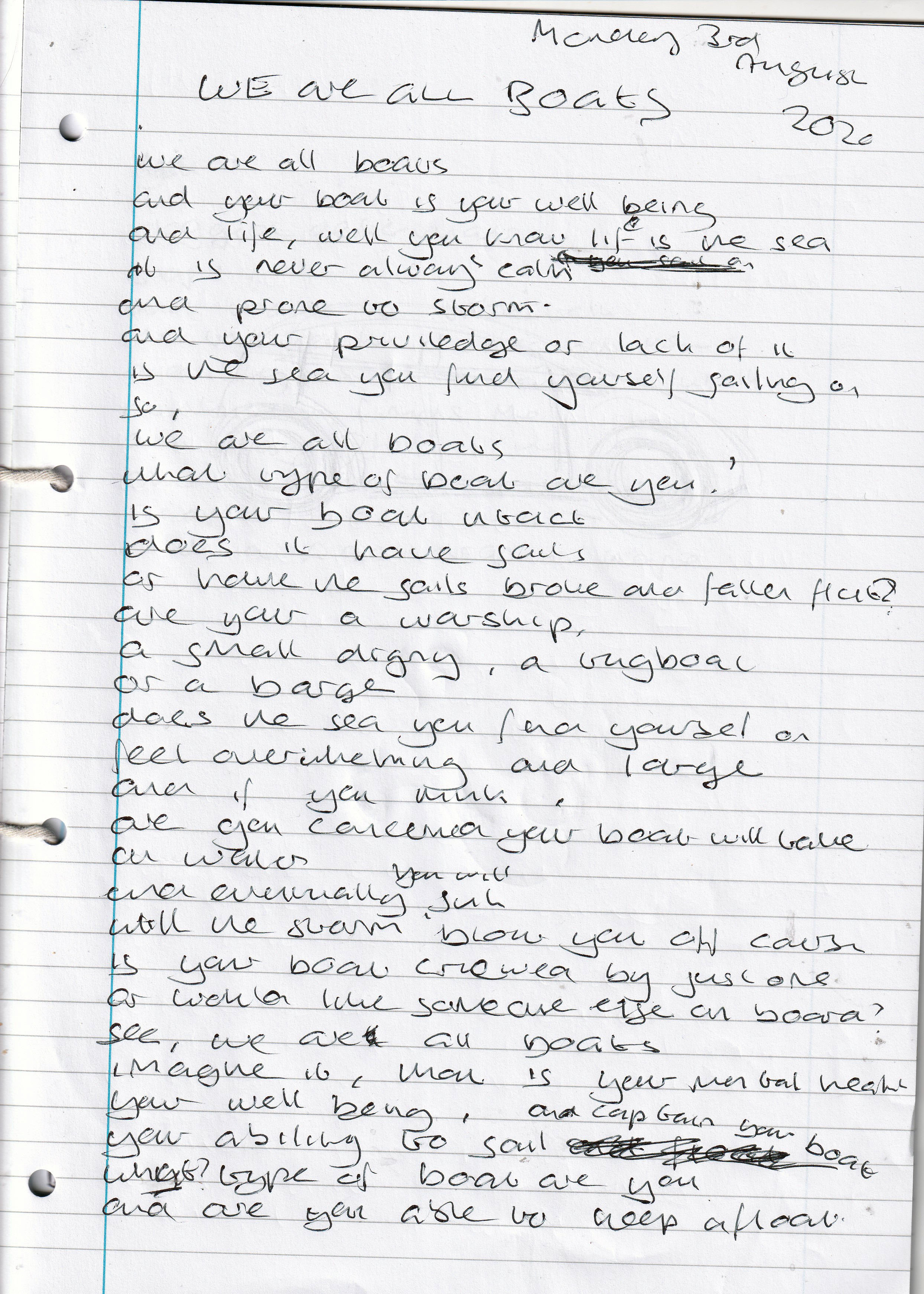 We Are All Boats – Written Monday 3rd August 2020 (Aged 45)