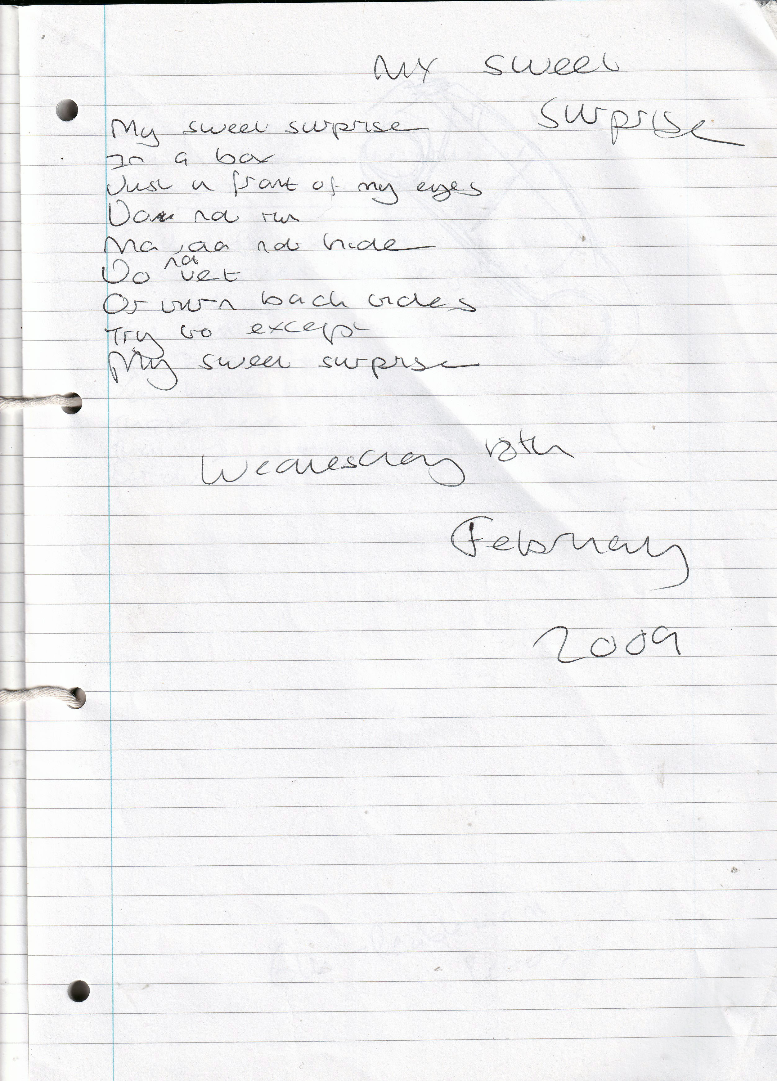 My Sweet Surprise – Written Wednesday 18th February 2009 (Aged 33)