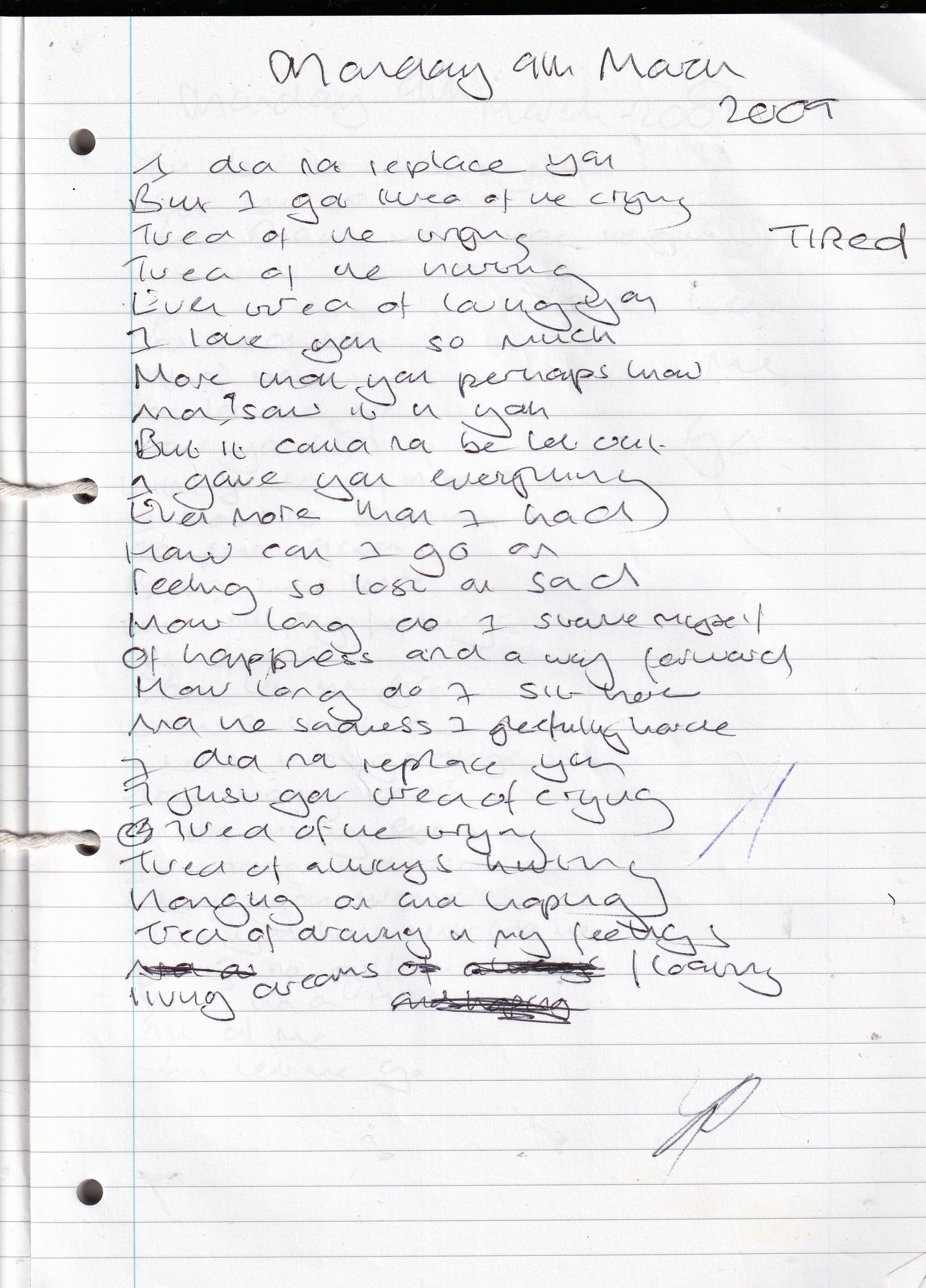 You Have Exhausted Me – Written Monday 9th March 2009 (Aged 34)