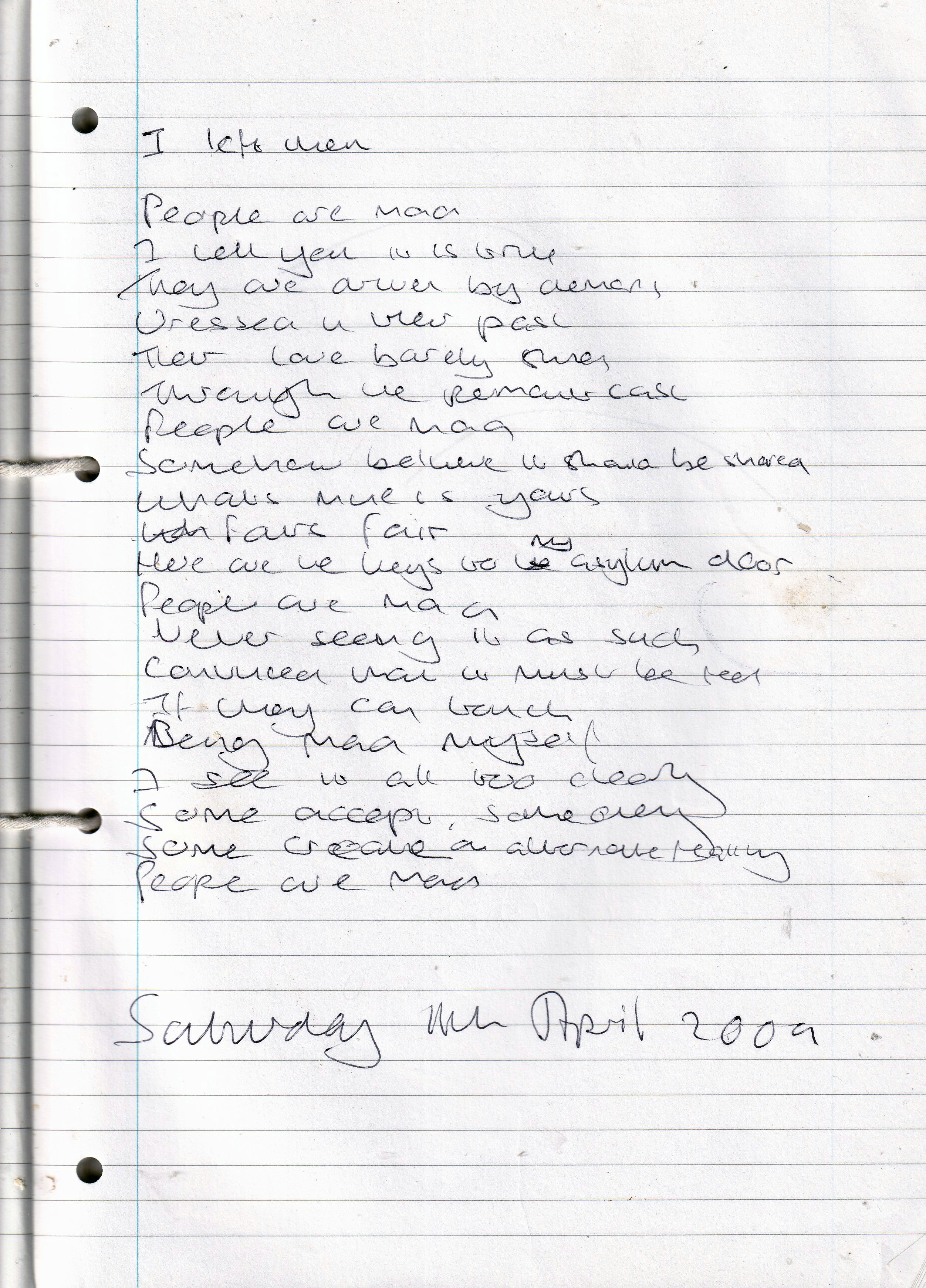 People Are Mad – Written Saturday 11th April 2009 (Aged 34)