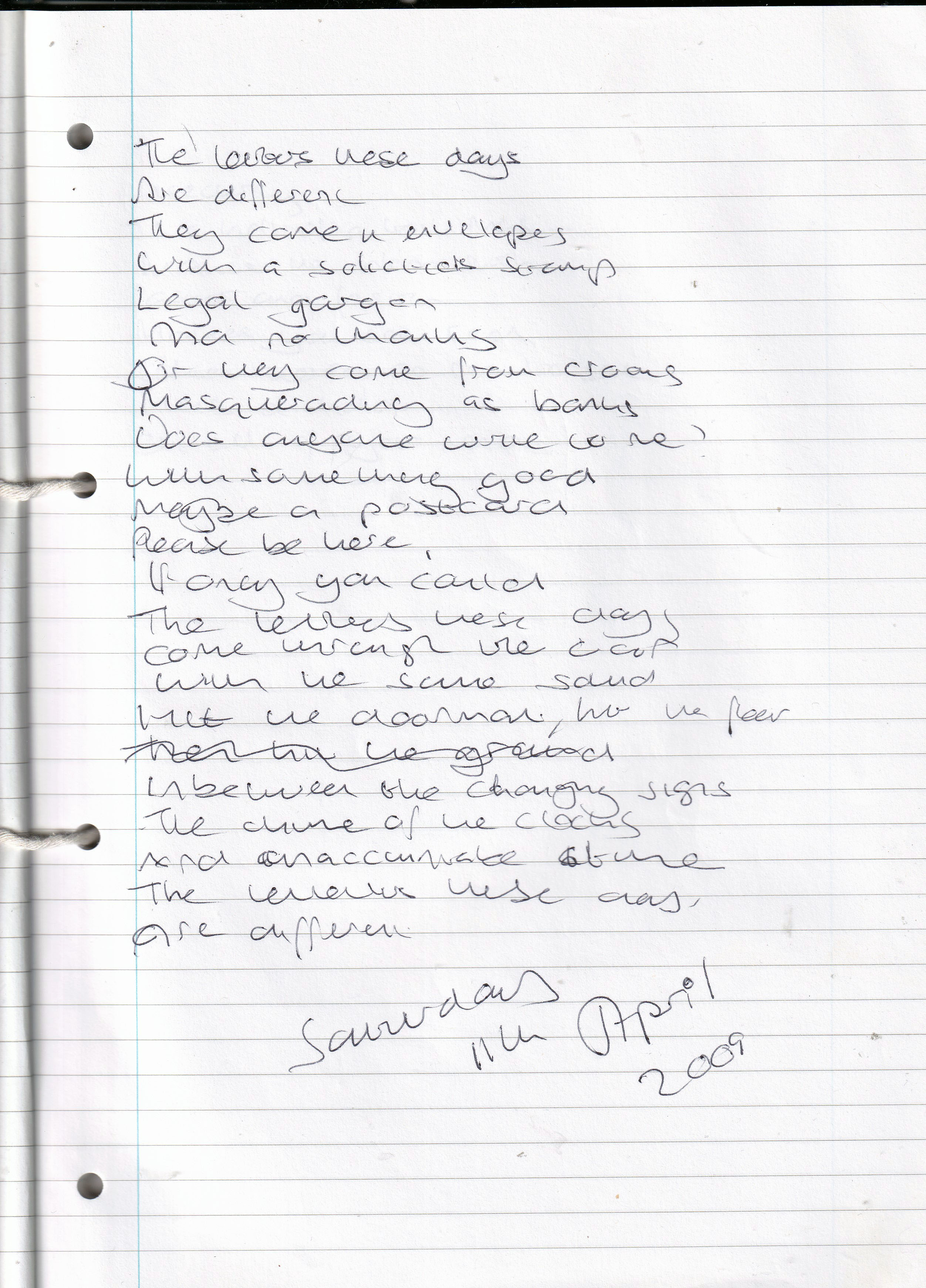 The Letters These Days – Writing Saturday 11th April 2009 (Aged 34)