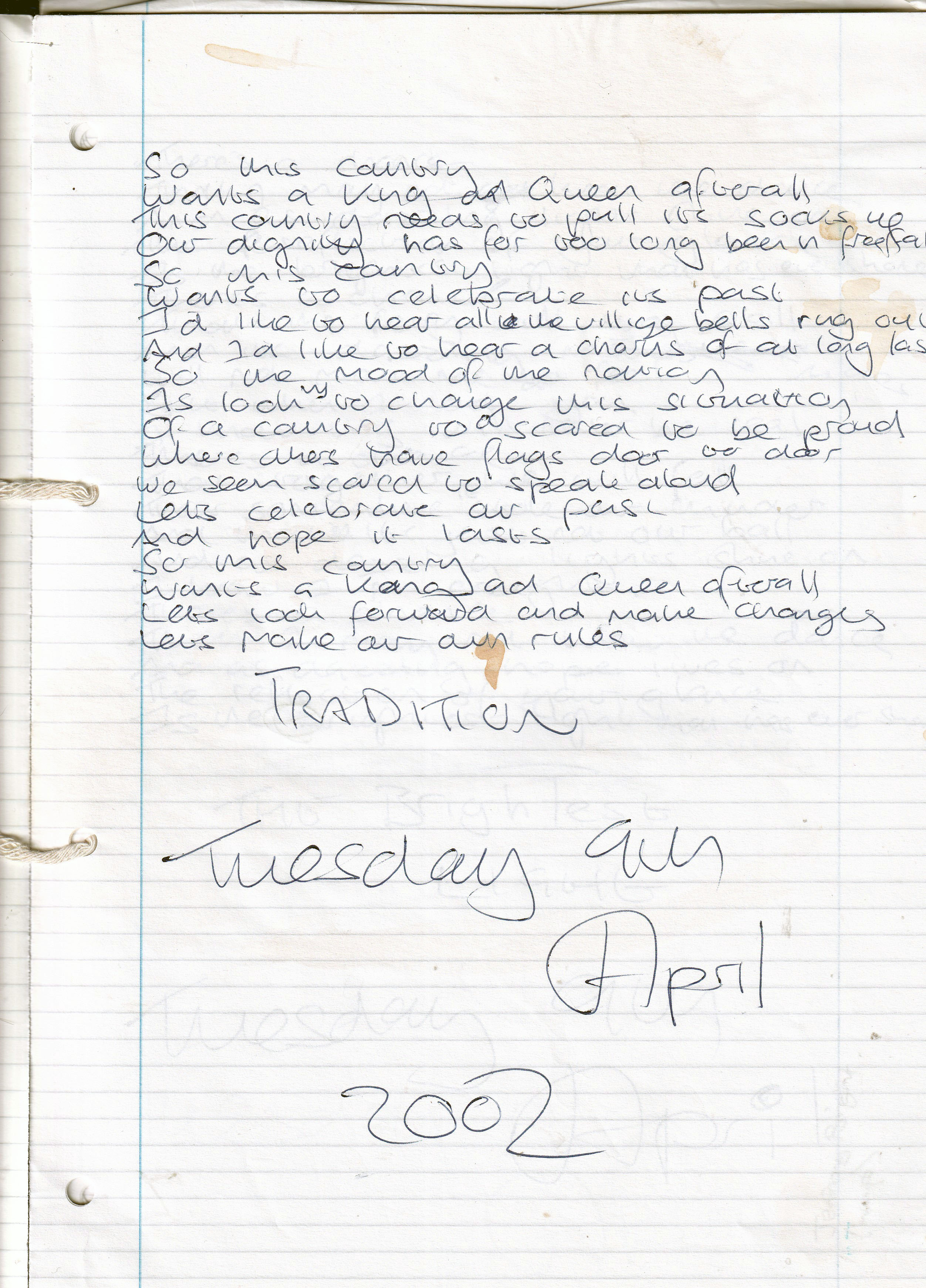 Tradition – Written Tuesday 9th April 2002 (Aged 27)