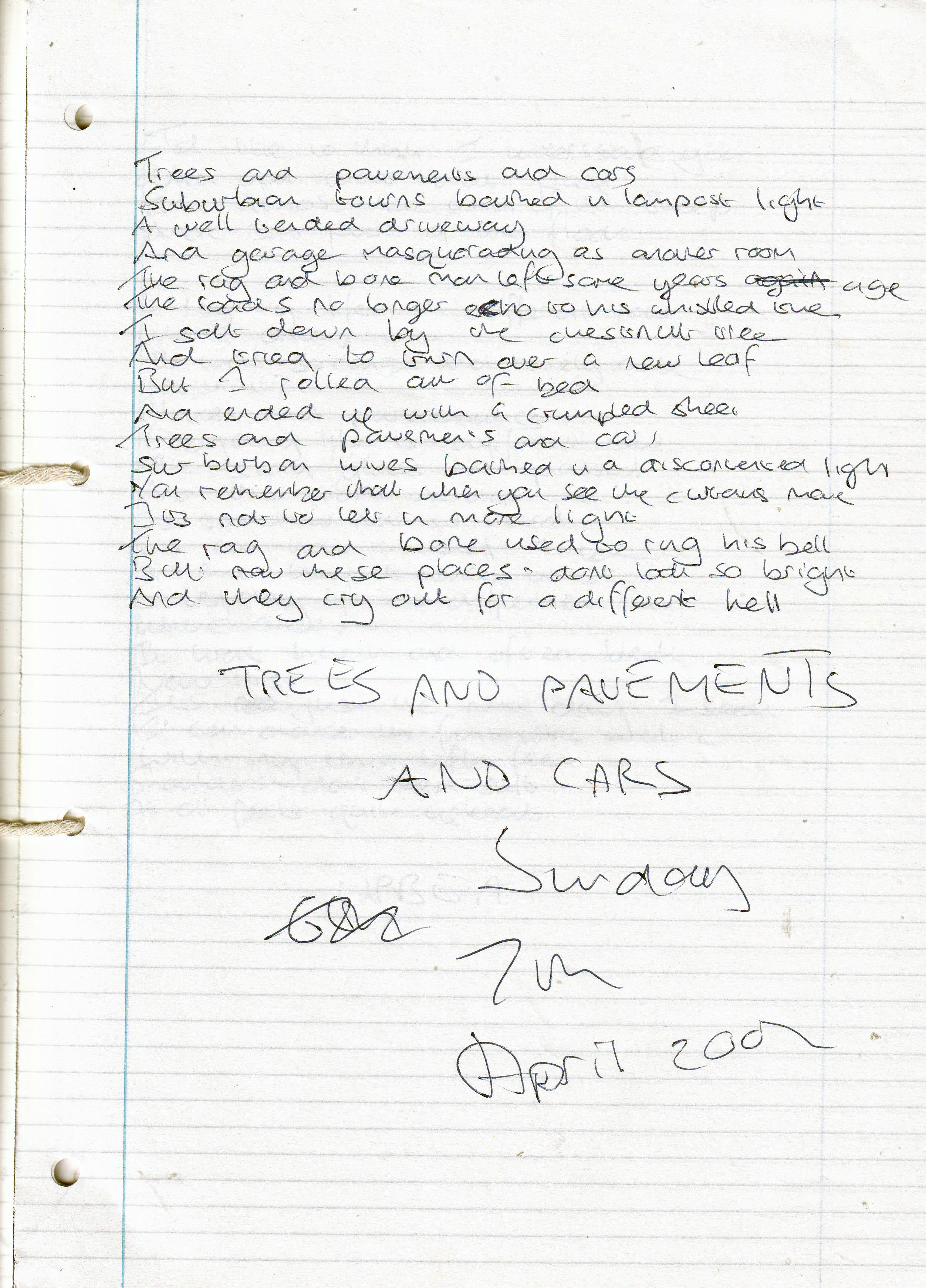 Trees and Pavements and Cars – Written Sunday 7th April 2002 (Aged 27)