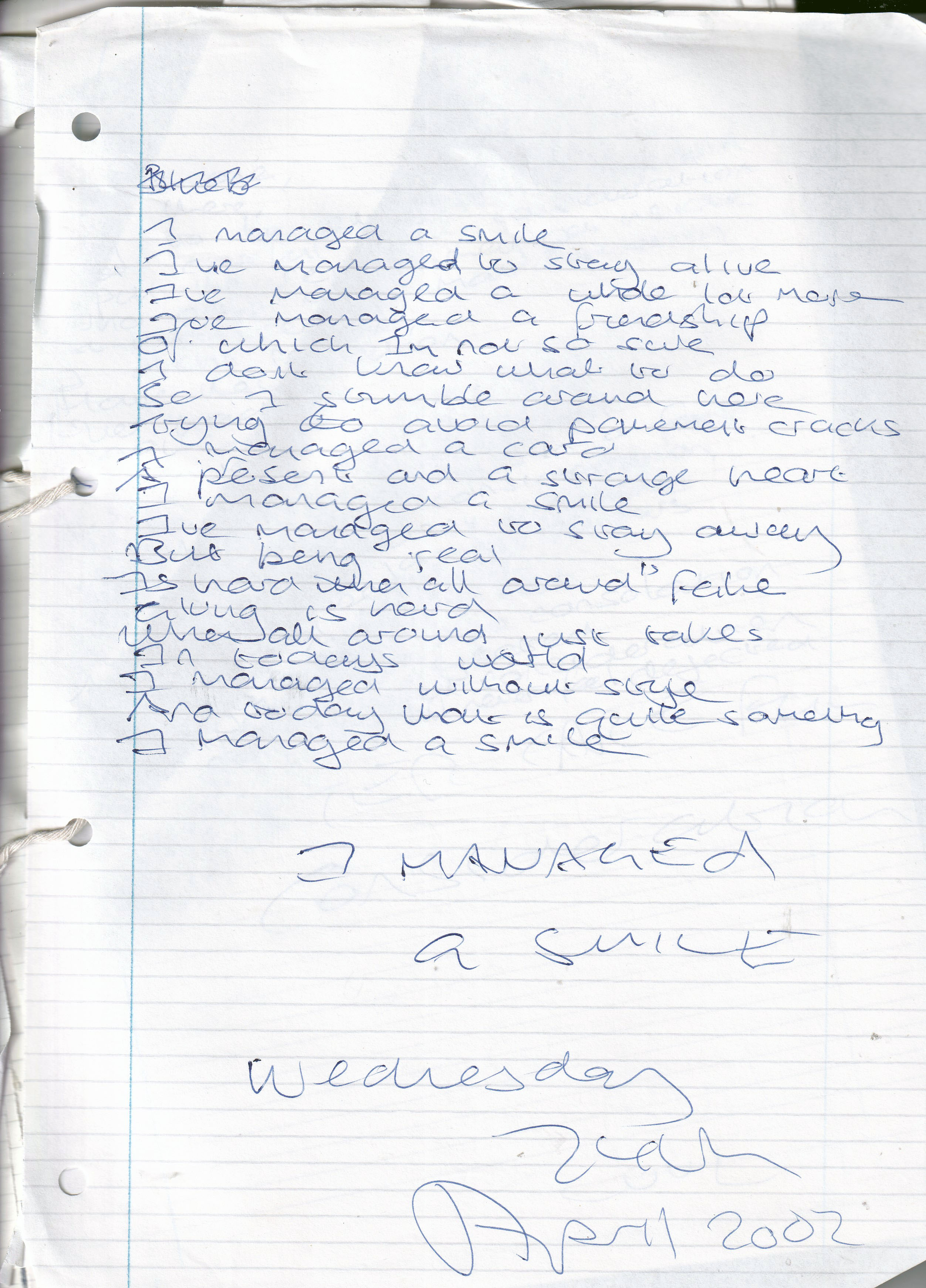 I Managed a Smile – Written Wednesday 24th April 2002 (Aged 27)