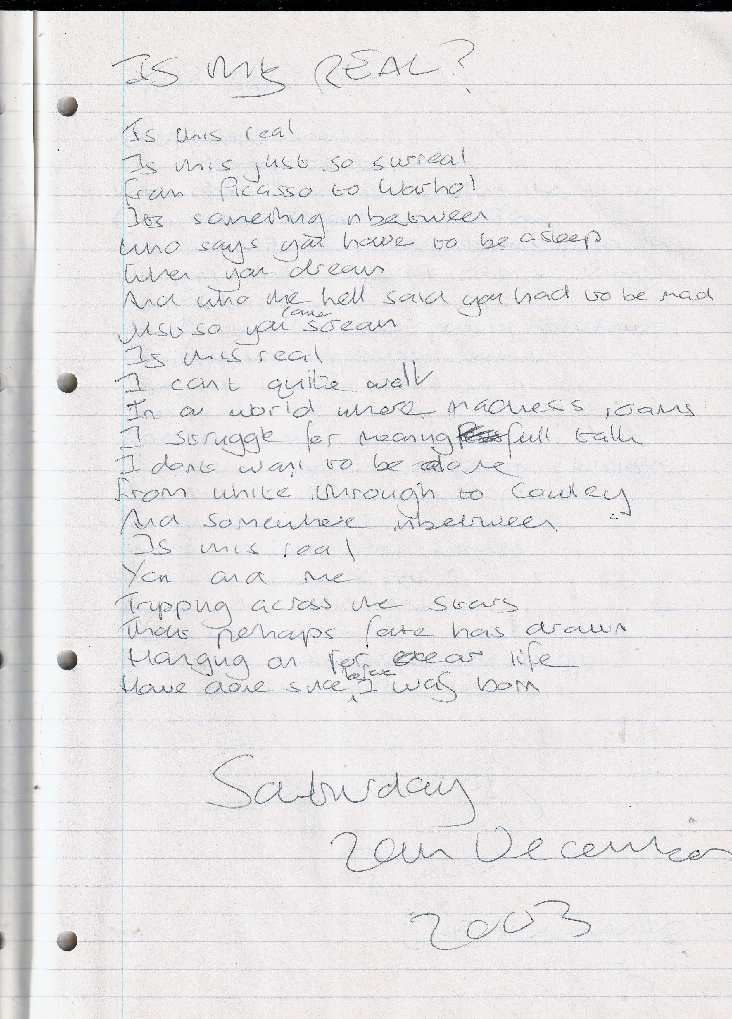 Is This Real? – Written Saturday 20th December 2003 (Aged 28)