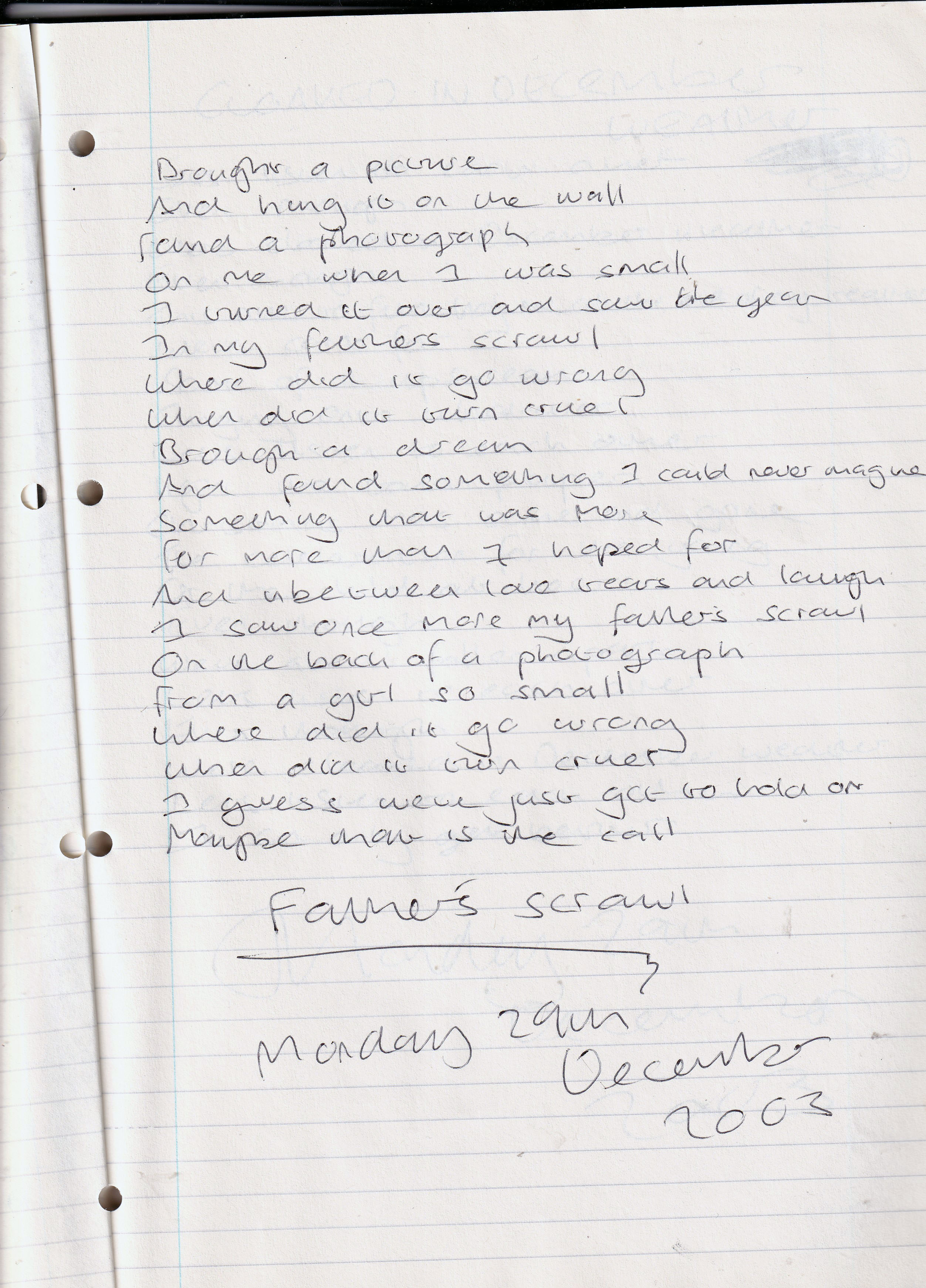 Father’s Scrawl – Written Monday 29th December 2003 (Aged 28)